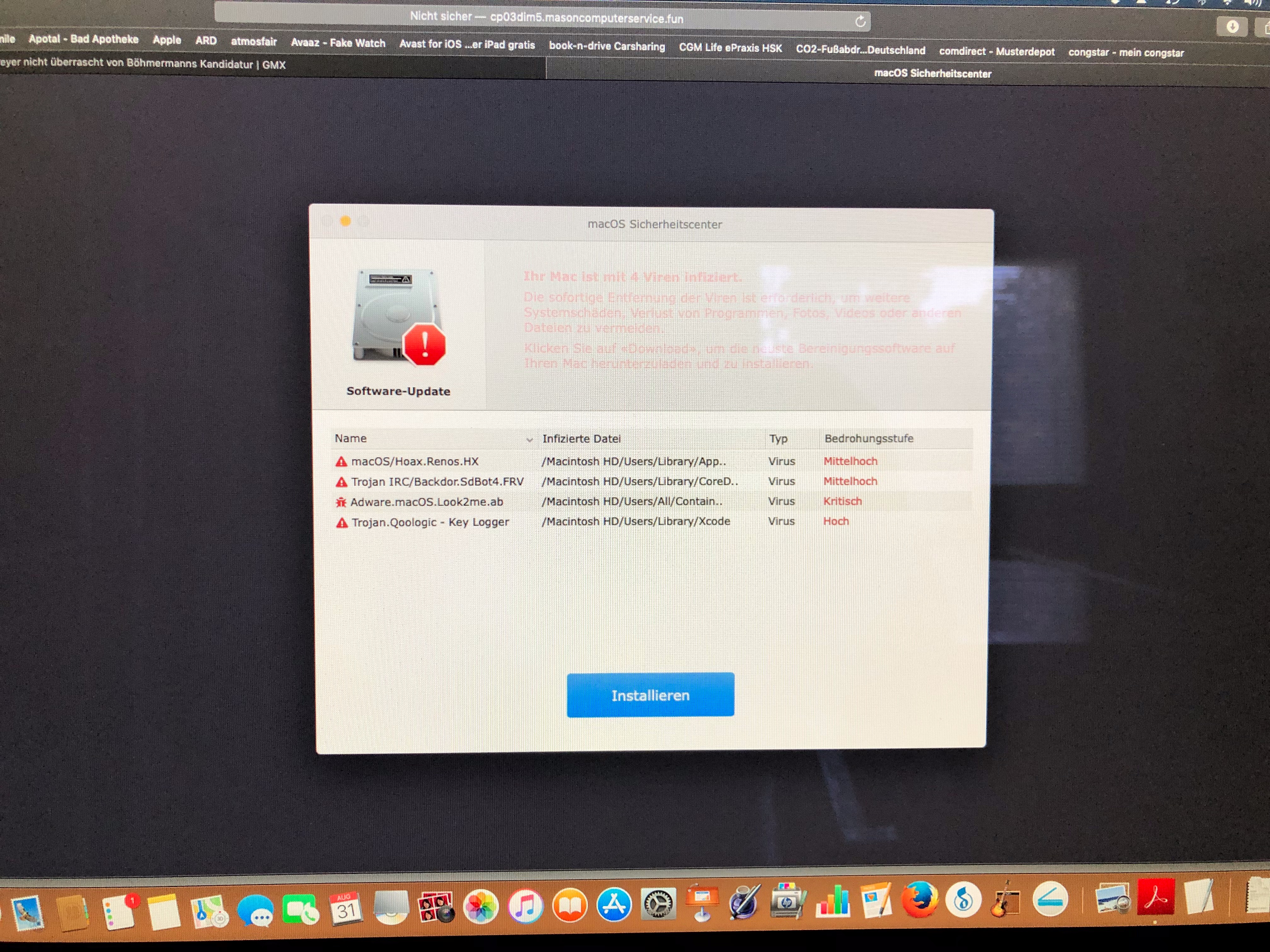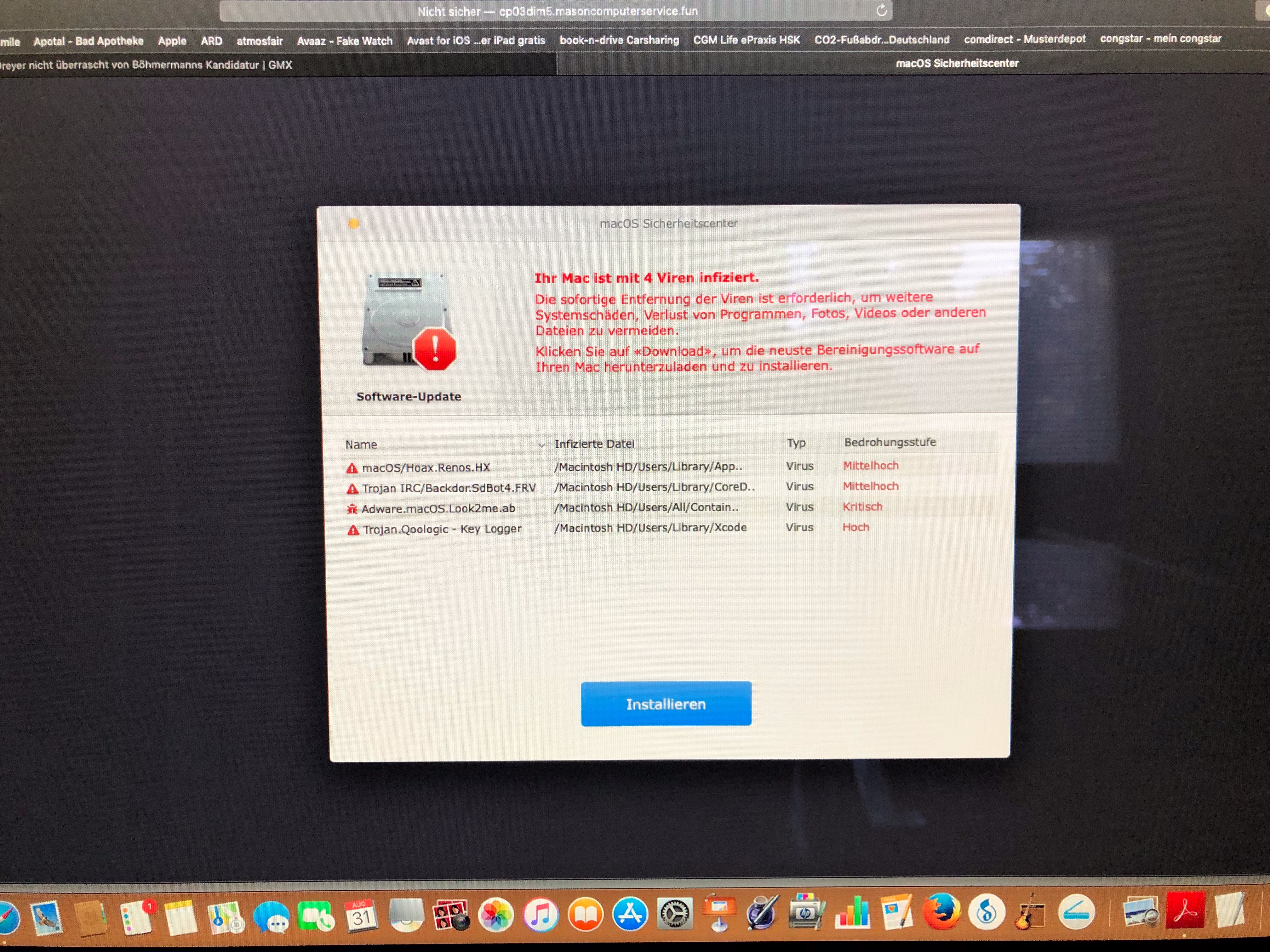 Virenalarm vom "macOS Sicherheitscenter" bei bzw. nach Besuch der GMX-Homepage