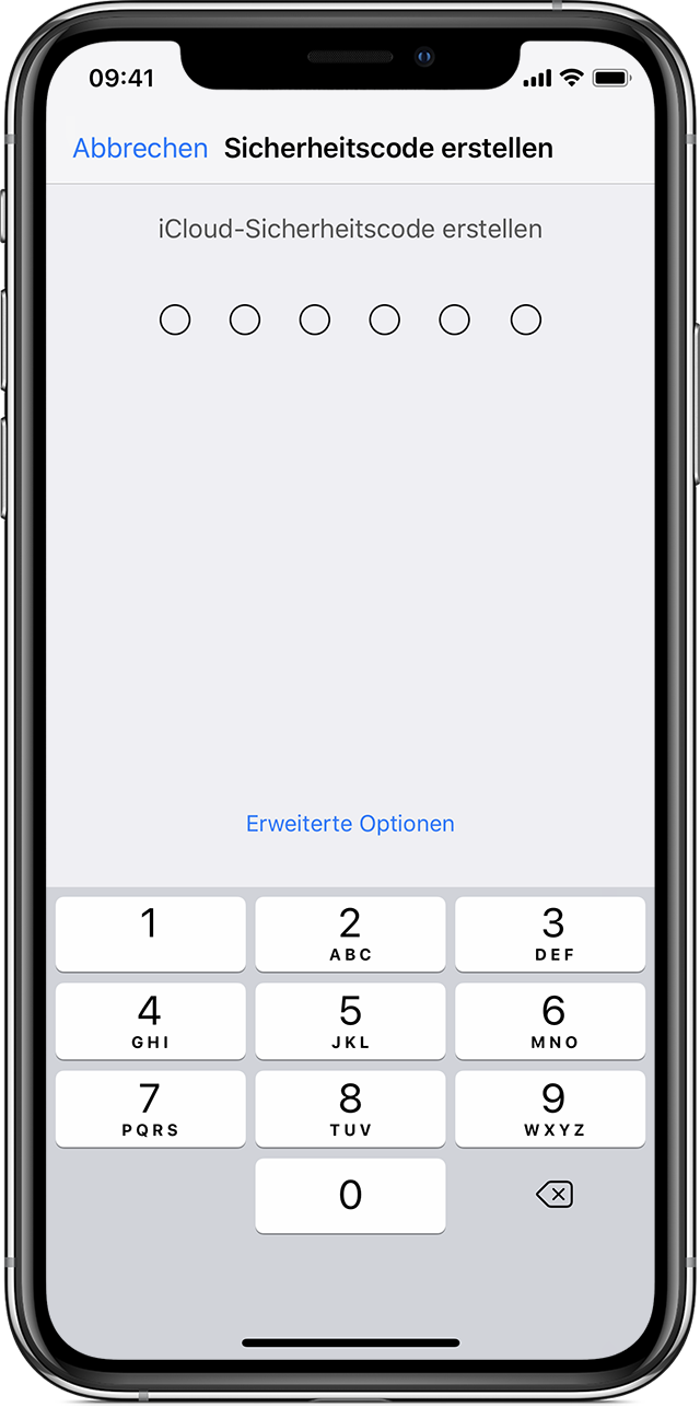 Sie können einen neuen iCloud-Sicherheitscode mit einem anderen Gerät erstellen, das auch Ihren iCloud-Schlüsselbund nutzt.