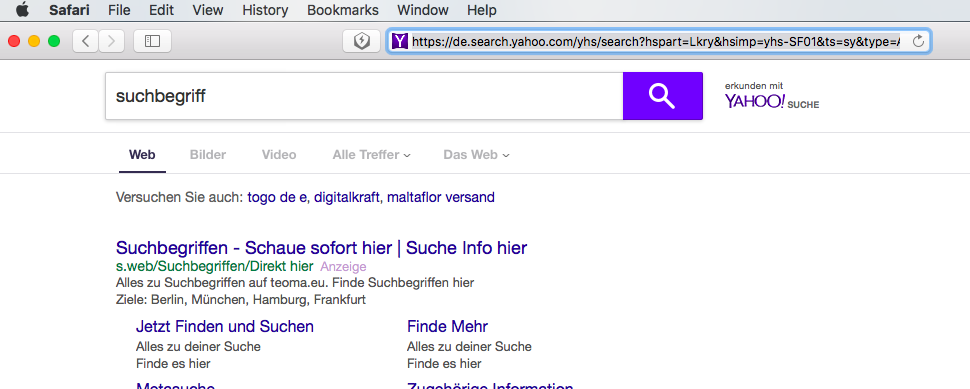 Ich habe mir den search.yahoo.com redirect virus eingefangen. Obwohl ich in den Safari Einstellungen verdächtige Extensions und Caches, alle website-Daten, die Chronic und alle Voreinstellungen gelöscht habe, mehrere kostenfreie und kostenpflichtige Antivirus Programme durchlaufen lassen habe, lässt sich google bei mir nicht mehr als Suchmaschine einstellen. Sobald ich in der Safari Search einen Suchbegriff eingebe, lädt es länger als normal und öffnet dann die Yahoo Suche.