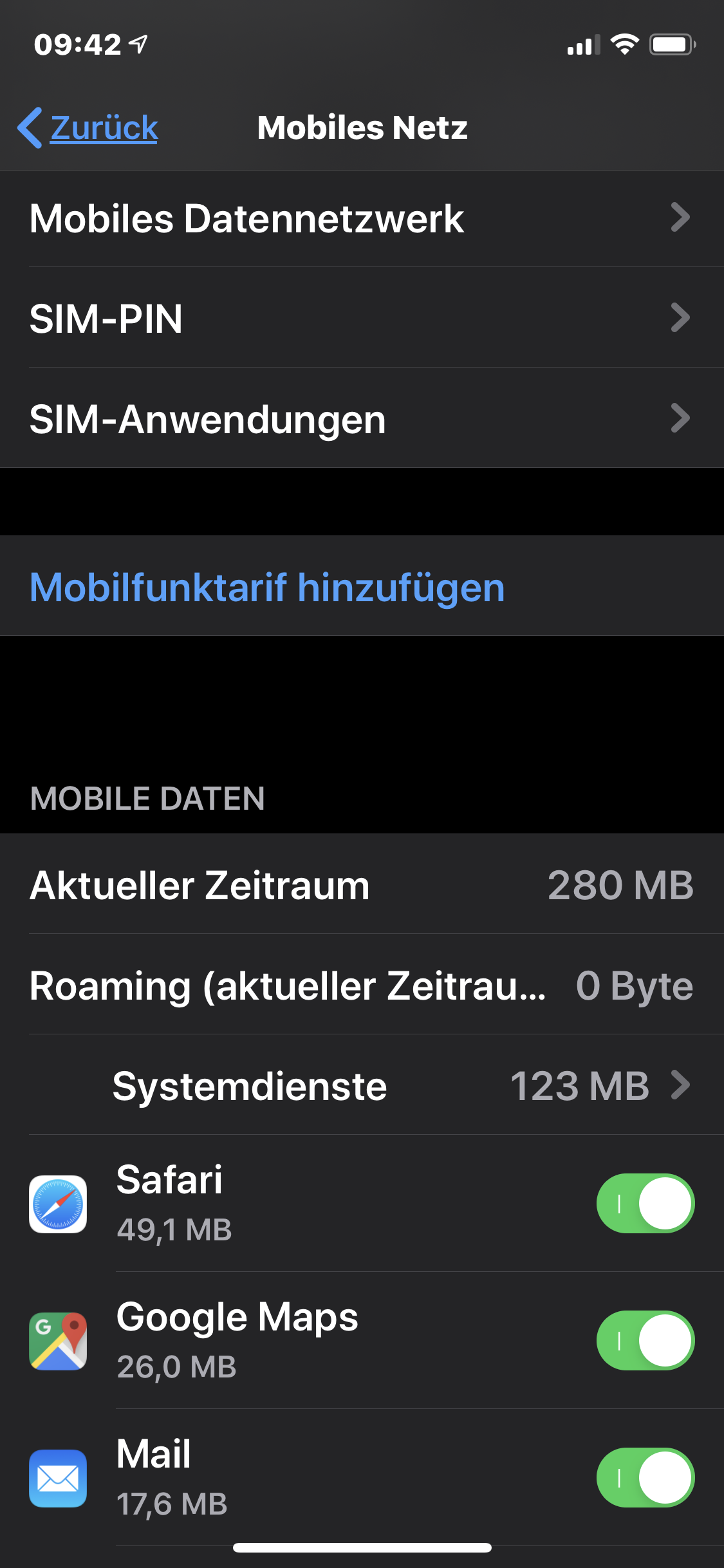 Unter iOS12: Stimmt der Gesamtverbrauch der Mobilen Daten unter Einstellungen --> Mobiles Netz mit der Addition der darunter angezeigten Apps und Systemdienste etwa überein oder besteht eine große Diskrepanz?