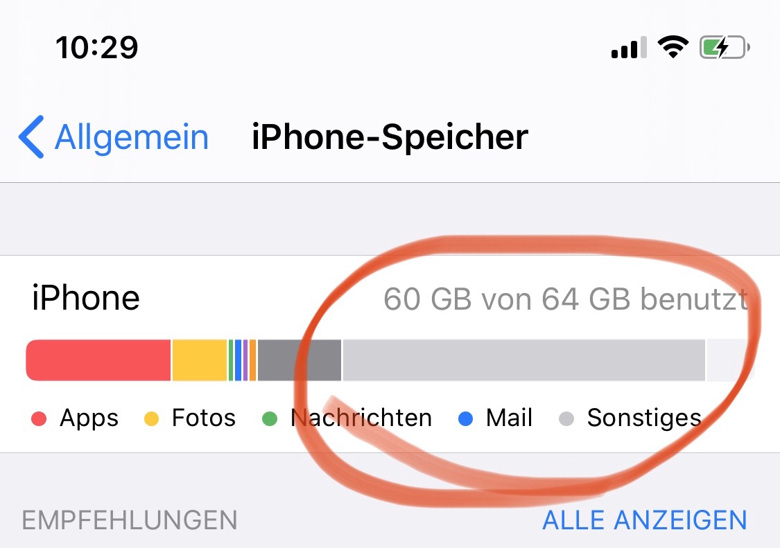 Kann mir jemand verraten wieso sonstiges 50% des Speichers meines iPhone X einnimmt ?