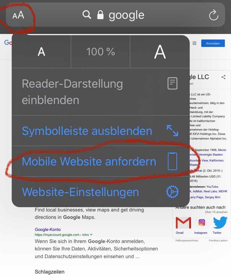 Wie fordere ich die Desktop-Version einer Website in Mobile Safari iOS 13 an