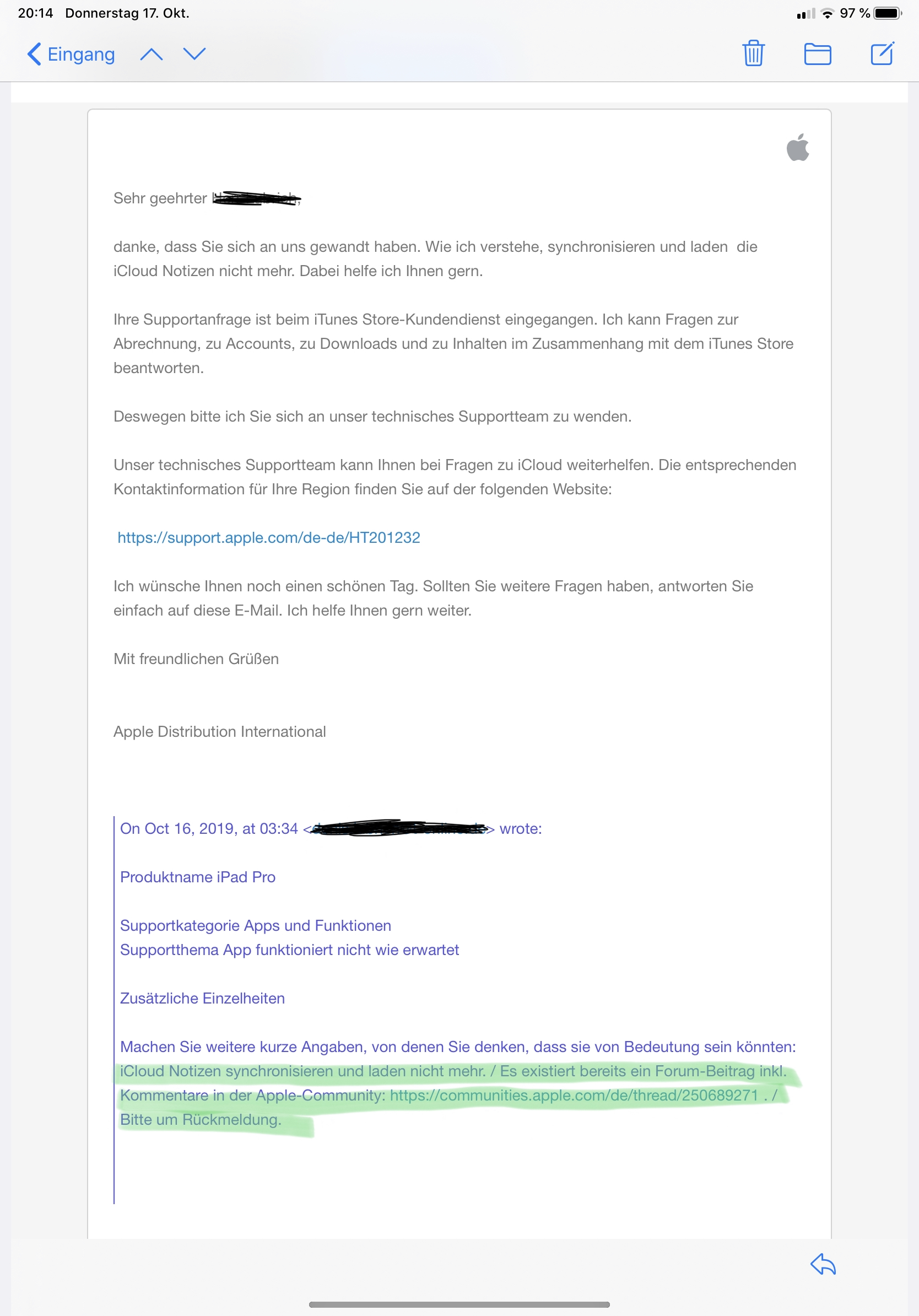 ich nutze die Apple Notizen-App. Seit iOS 13 synchronisieren meine Notizen unregelmäßig, lückenhaft oder gar nicht mehr. Ich habe auf allen Geräten (MacBook Pro, iPad Pro, iPhone XS) die aktuellste Software geladen.