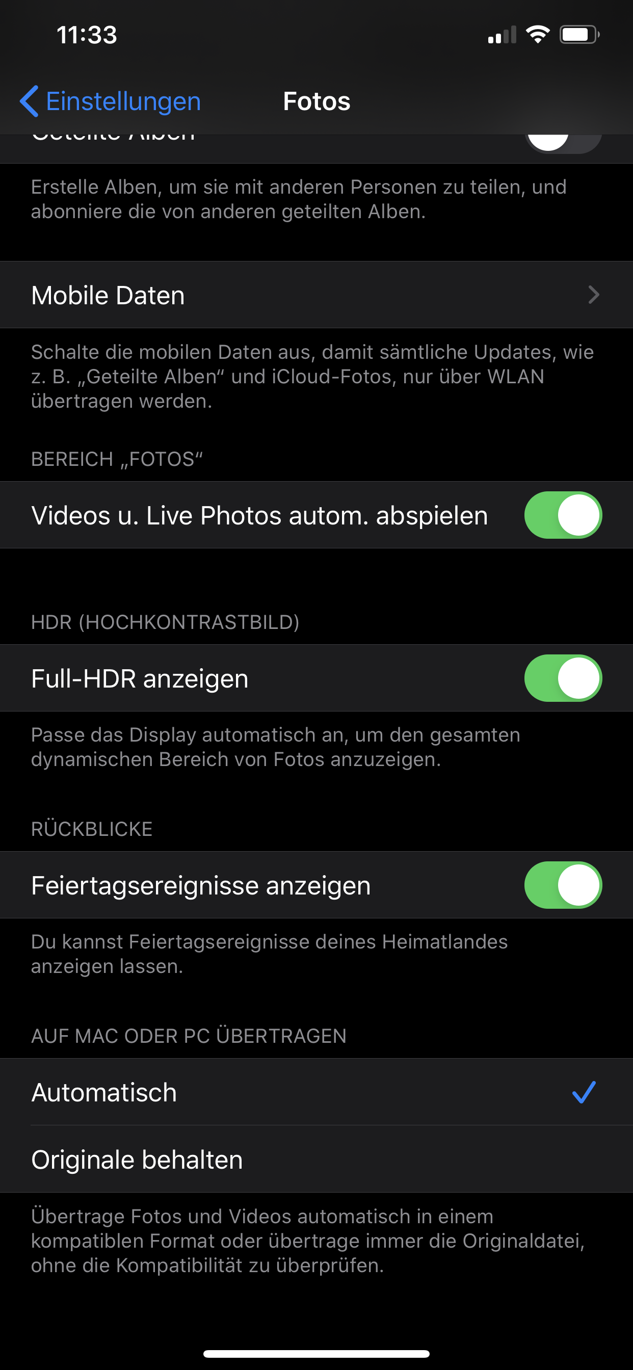 Ich bin Neueinsteiger mit den Apple Produkten. Ich dachte zuerst, dass es evtl. mit den Einstellungen in der Kamera-App zu tun haben könnte. Nachdem mir aber ein Bekannter sagte er könne mit seinem IPHONE 8 und IOS 13 ohne Probleme Bilder teilen, glaube ich nun eher, dass das Problem eher mit dem neuen IPHONE pro max zusammenhängt. Hat Jemand auch diese Erfahrung gemacht?