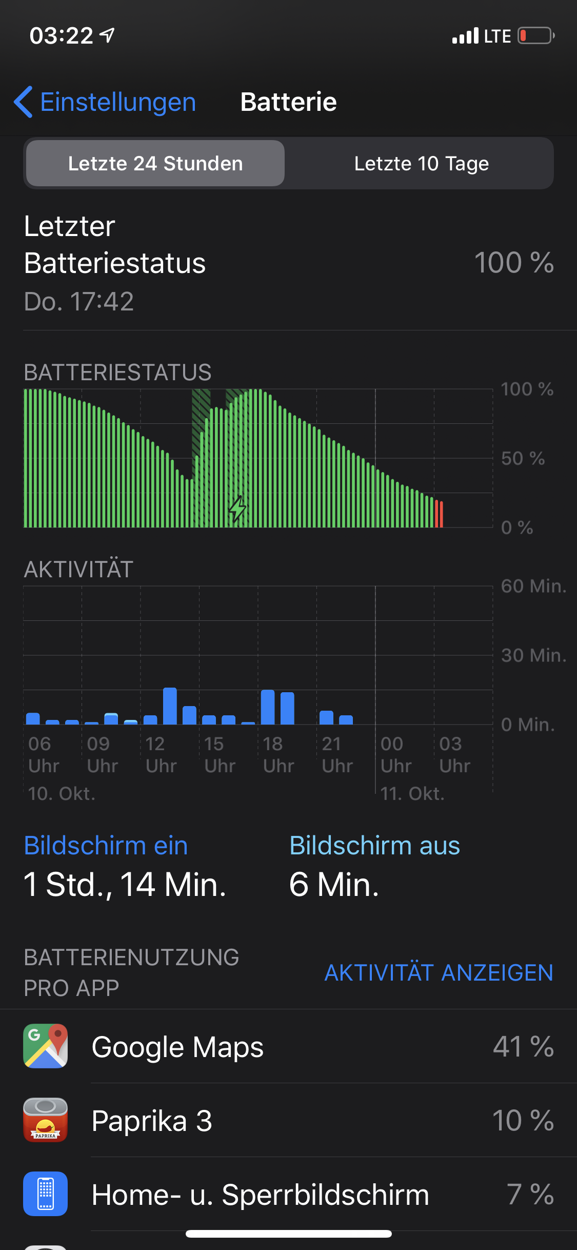 Zudem kommt noch ein enormer Datenverbrauch hinzu. 6 GB weg bis zum 9. Oktober, ein weiterer Daten Pass mit 2,5 GB in zwei Tagen ebenfalls aufgebraucht. Hab sonst nie Probleme damit gehabt, bei gleicher Nutzung wie vor dem Update. Ab jetzt gedrosselt unterwegs.