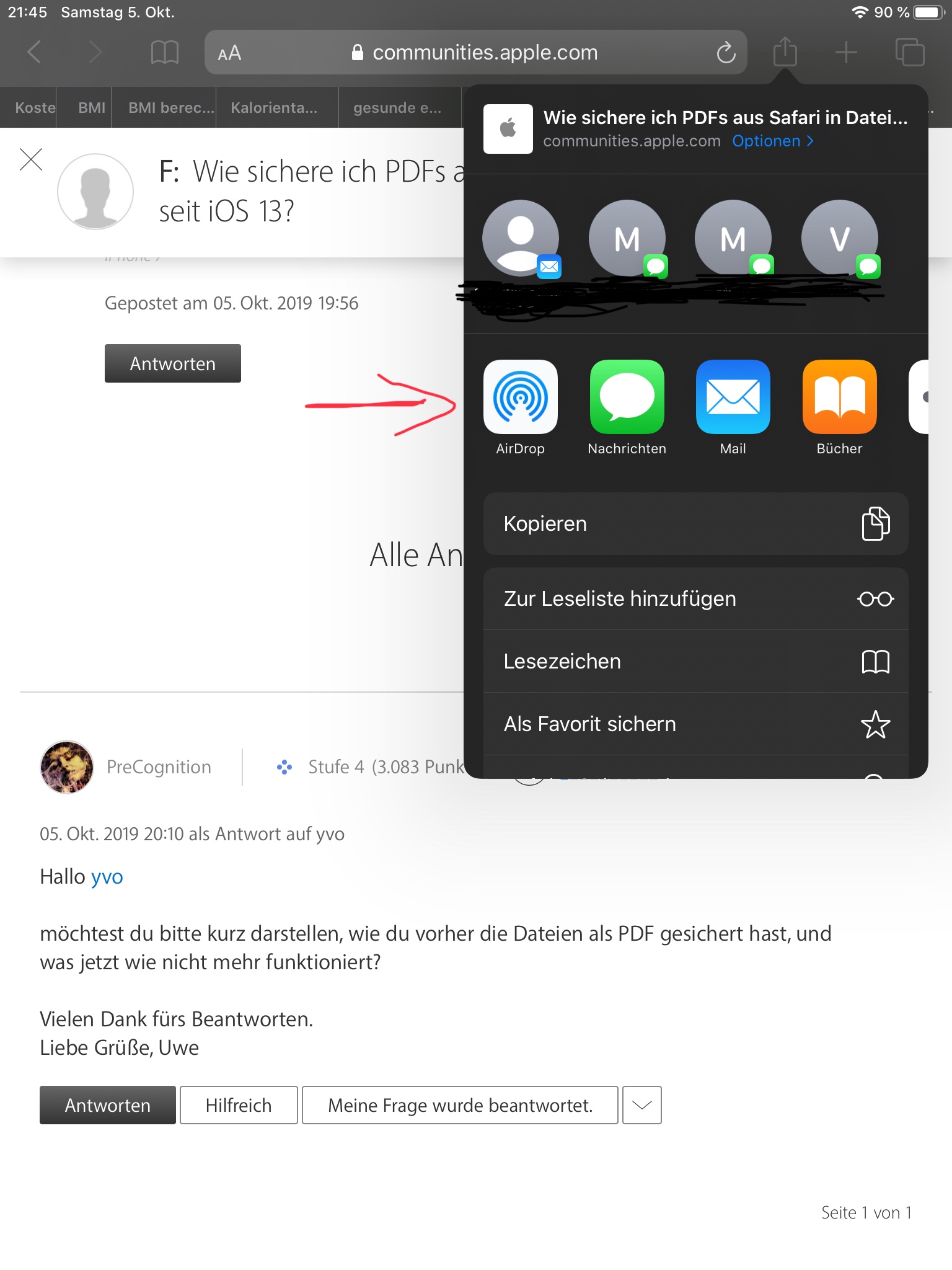 Wie sichere ich PDFs aus Safari in Dateien, seit iOS 13?