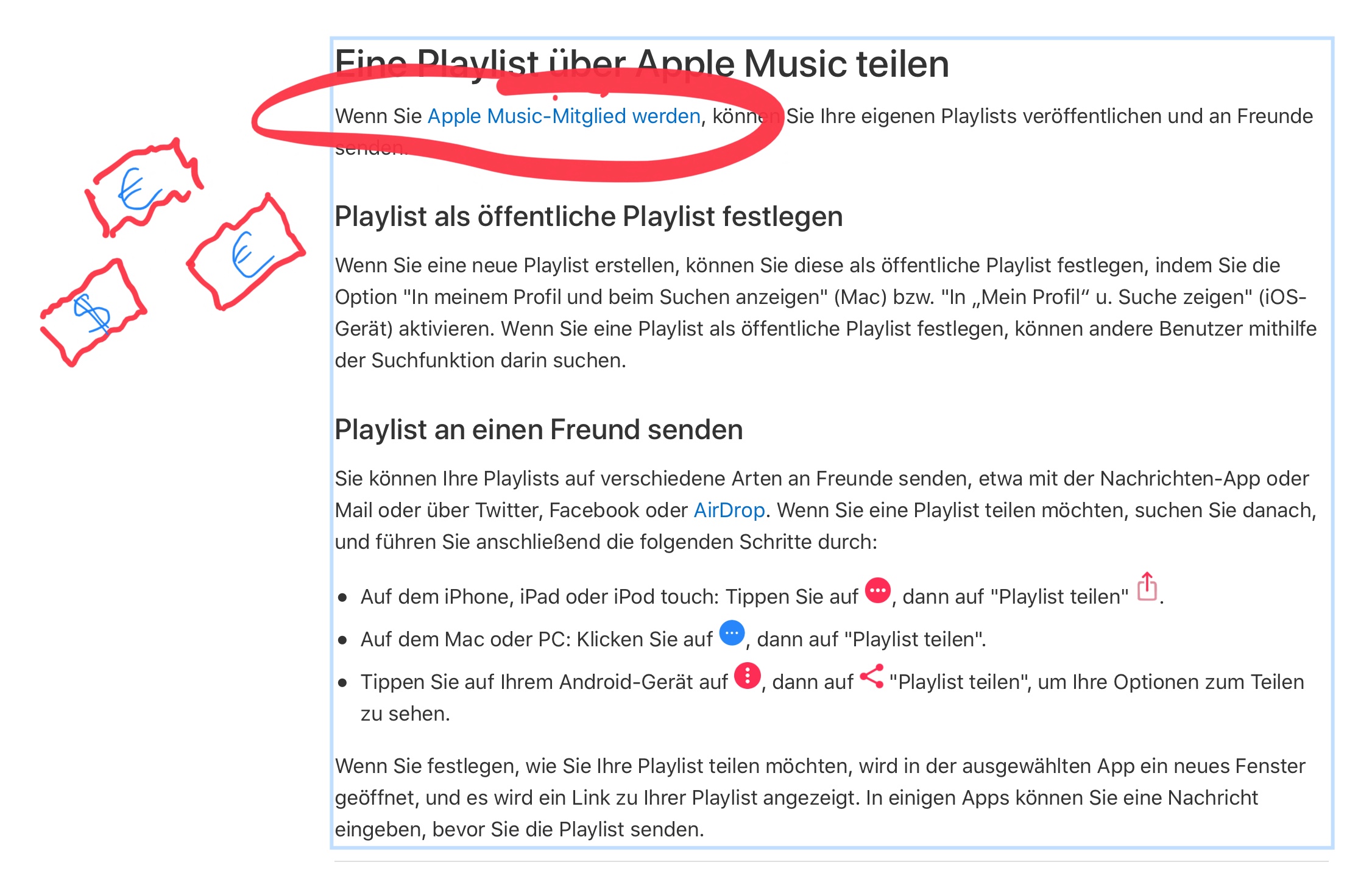 In dem Beitrag „Playlisten vom iPad auf iPhone übertragen“ stellte Tissi am 01.10.2017 die Frage: „wie kann ich auf einfachem Weg eine auf dem iPad erstellte Playlist auf mein iPhone übertragen?“ Apple antwortete: „Du kannst Playlisten am einfachsten in deinem iTunes erstellen und anschliessend auf dein iPad oder iPhone synchronisieren.“ Das ist allerdings keine einfache Lösung für die Übertrag der Playlists vom iPhone aufs iPad (oder vice versa). Auch andere User in demselben Thread vermissen eine solche. User andré7777 vermutete deshalb sogar: „Meiner Meinung nach ein Bug, es muss doch möglich sein, eine Playlist auf dem iPad zu erstellen und in iTunes zu sehen.“ >> https://communities.apple.com/de/thread/200013844