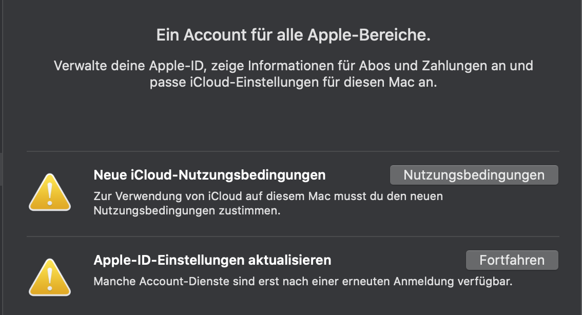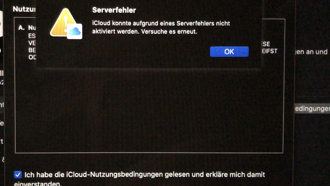 iCloud Nutzungsbedingungen können unter macOS Catalina nicht akzeptiert werden