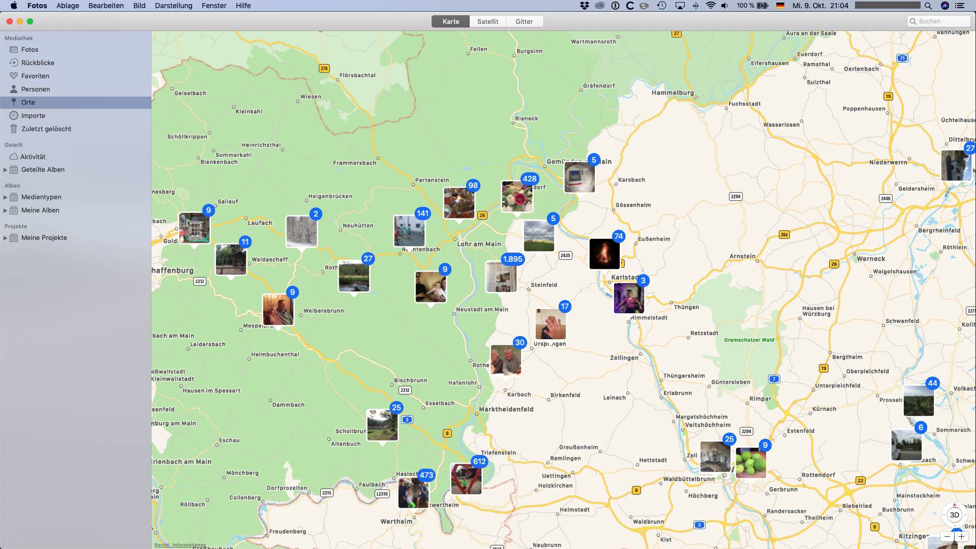 1. Ich rufe die Darstellung "Orte" in Fotos auf.