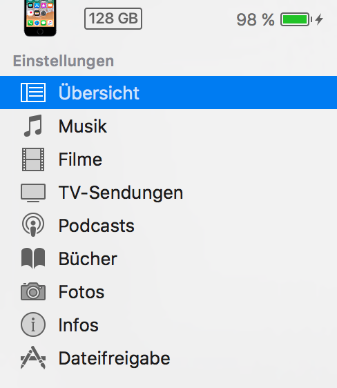 Gerade habe ich erneut ausprobiert bei auf Mac geöffnetem iTunes mein angeschlossenes iPhone in der linken Seitenleiste zu sehen - aber ohne die Option FOTOS noch. Dann passierte das kleine Wunder: oben erschien (anders als gestern und vorgestern... HUCH???) die Möglichkeit das iPhone separat nochmals anzuklicken. Getan > links kam die Auswahl FOTOS in die linke Spalte. Wunderbar. Jetzt kann ich los legen... Und auf Catalina lieber wohl nicht aktualisieren, oder??