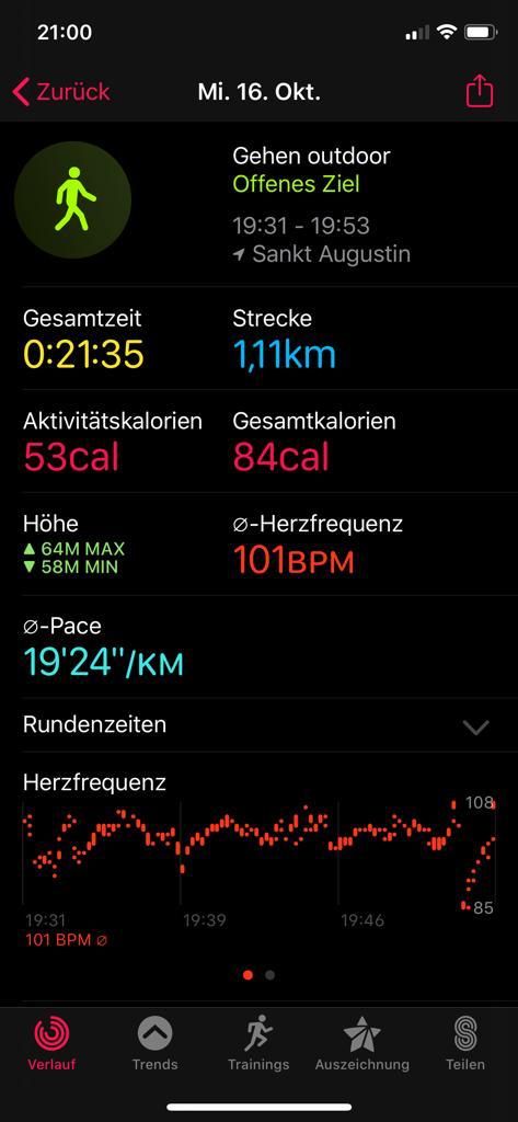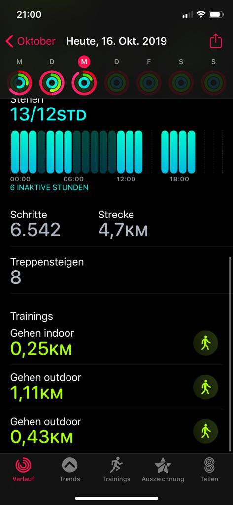 Grüner Trainings-Ring füllt sich nicht, trotz aufgezeichnetem Training