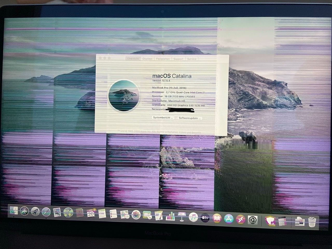 Oder nur großflächige bunte Bereiche getrennt durch Vertikale Linien. Dann ist absolut nichts mehr auf dem Bildschirm zu sehen. Ich benutze das MacBook Pro nur noch mit externem Monitor, aber dafür brauche ich kein MacBook, wenn ich es mobil nicht nutzen kann.