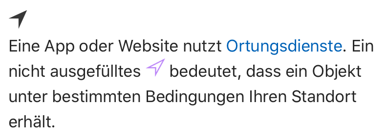 Bei eingeschalteten Ortungsdiensten bekomme ich die entsprechenden Symbole in den Einstellungen für die Ortungsdienste/Apps angezeigt. Das sieht dann so aus: