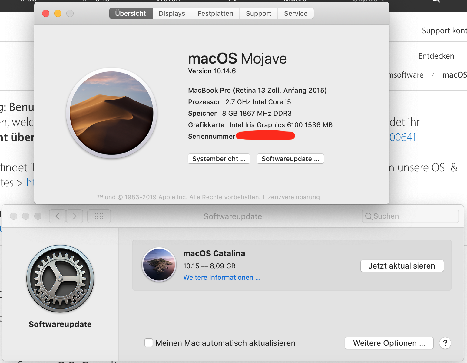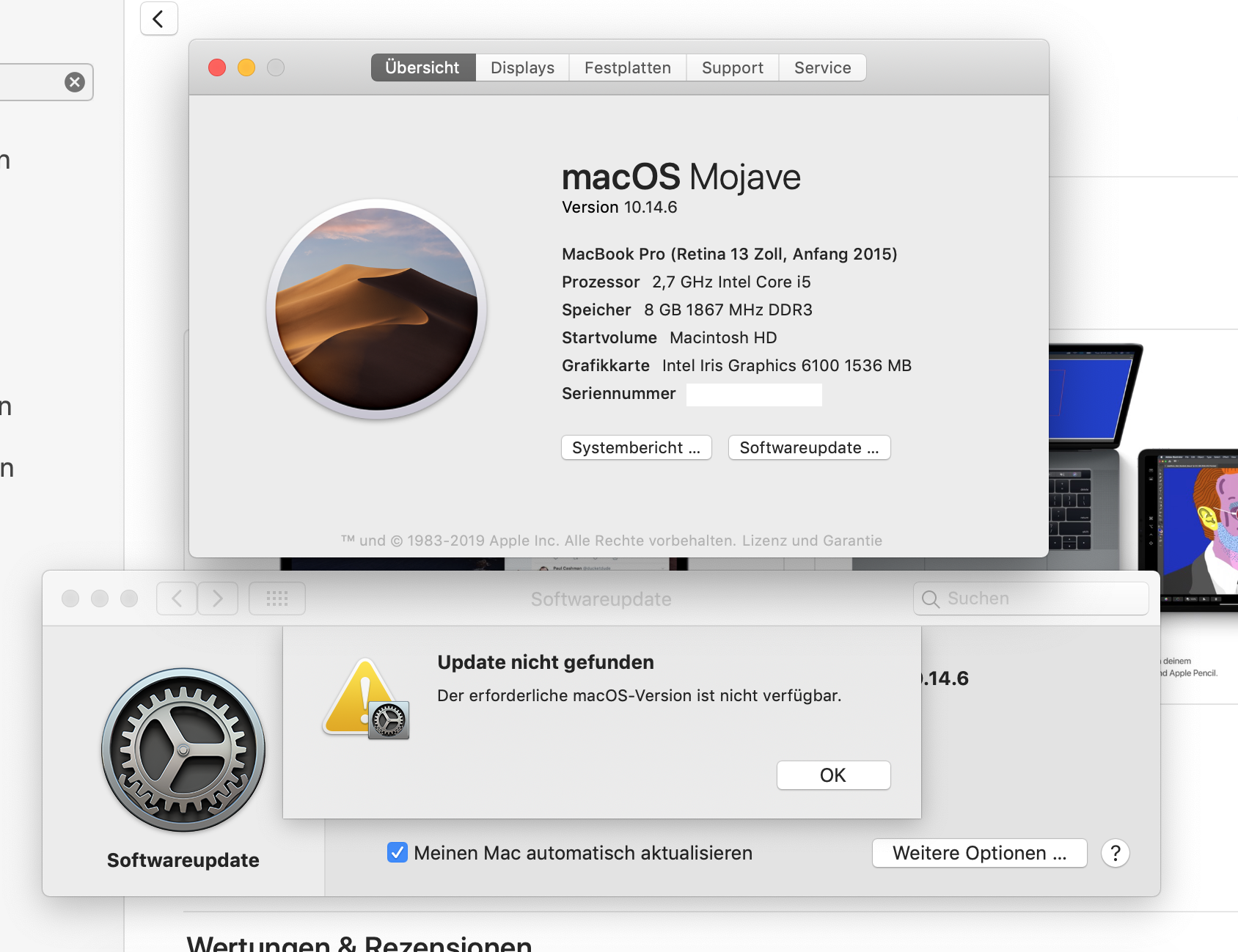 MacOS Catalina ist im App-Store nicht verfügbar, wollte ein MacBook Pro (Retina 13 Zoll, Anfang 2015) von MacOS Mojave updaten. Wo liegt der Fehler?