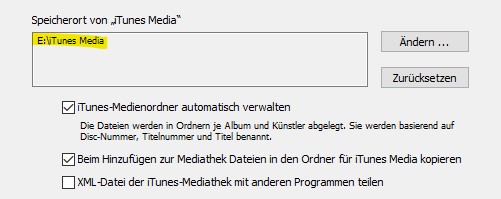 Itunes Media Speicherort lässt sich nicht ändern