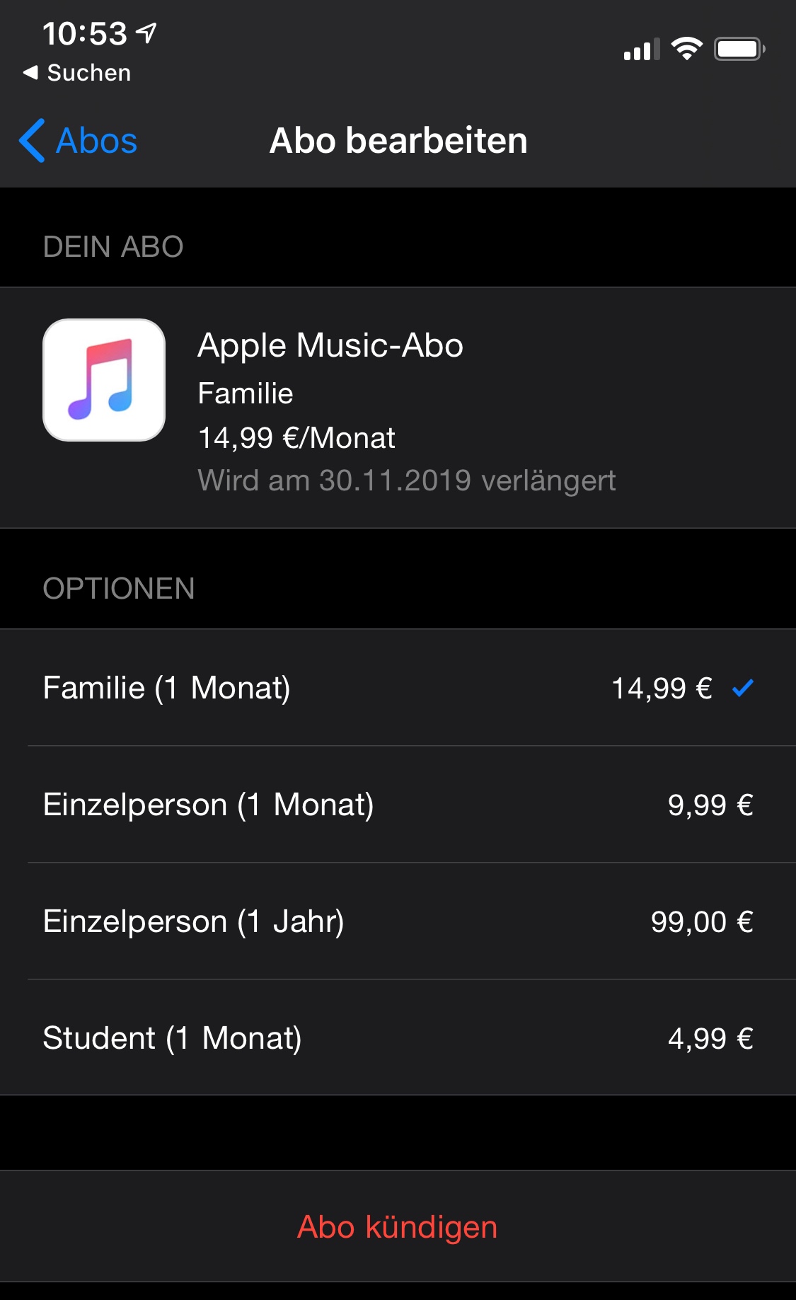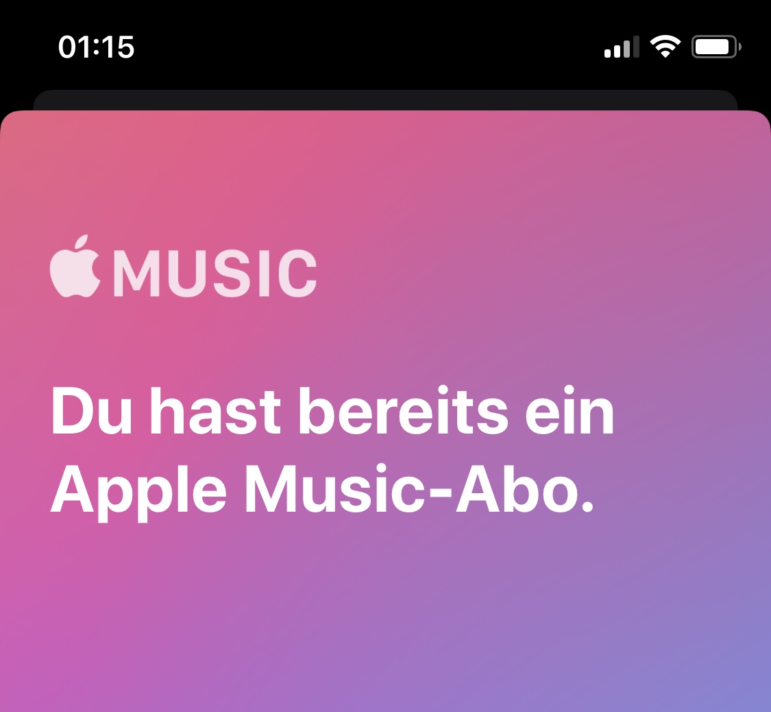 Wenn ich einen Titel zu streamen versuche auf dem IPhone und dem iPad geht das nicht. Es kommt immer nur die Meldung ich hätte schon ein Abo, aber abspielen tut er nix.