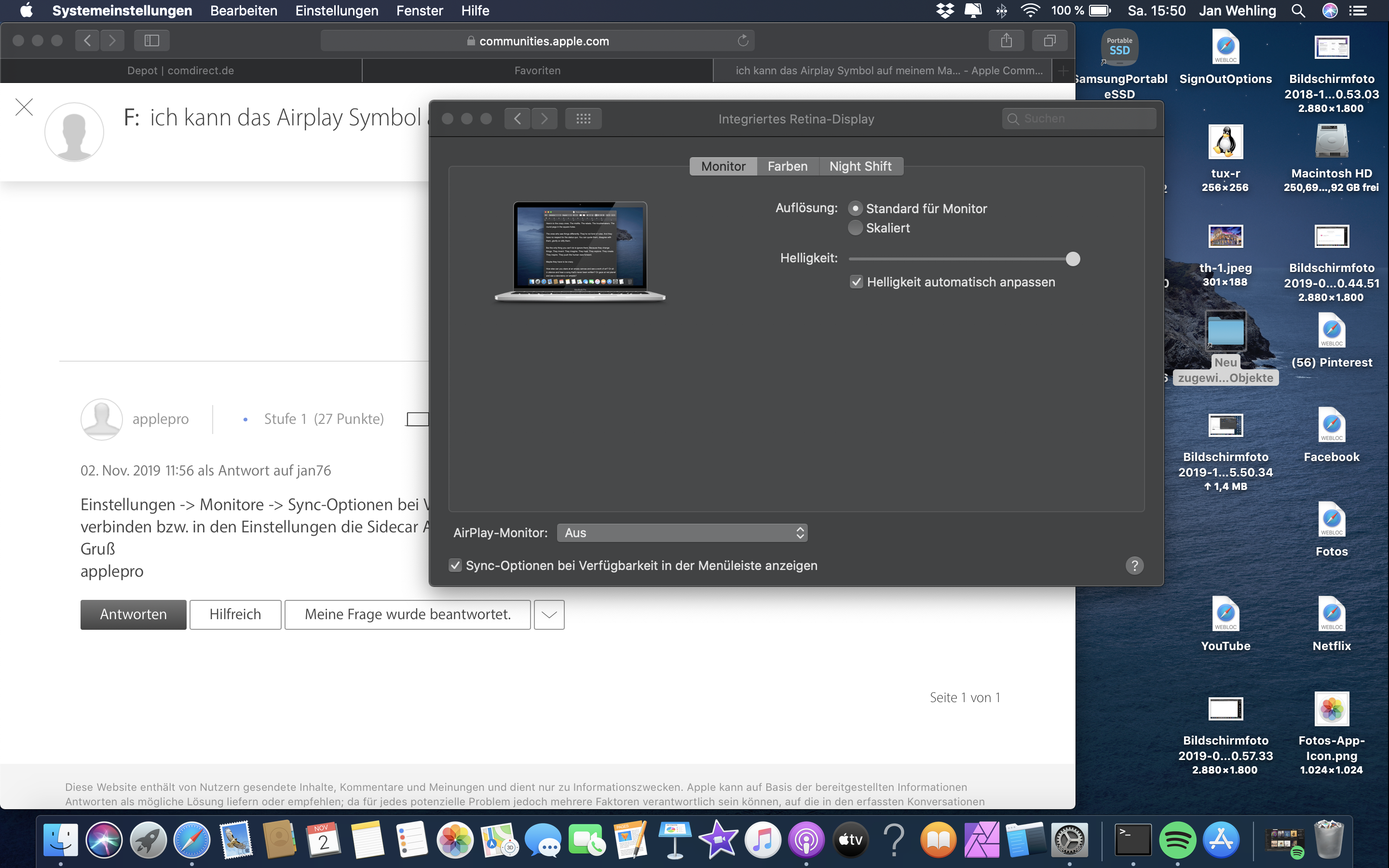 Hallo ich habe jetzt Catalina auf meinem Mac und wollte es mit meinem iPad Air 2 verbinden aber leider kann ich das AIRplay Symbol nicht finden und mein iPad nicht verbinden
