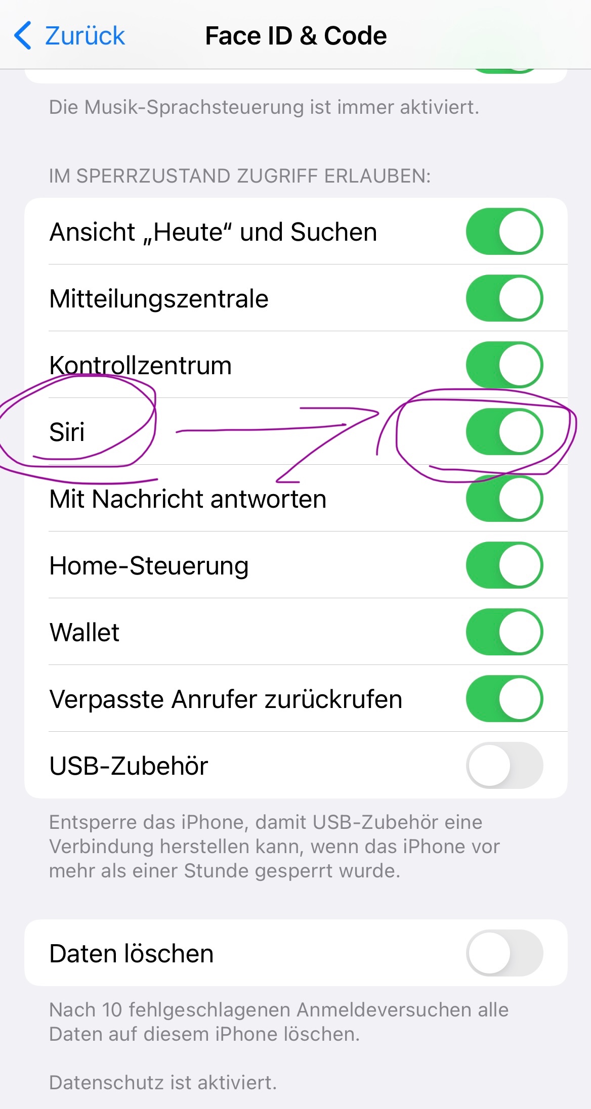 Siri im Sperrzustand erlauben ausgegraut. Gibt es dazu eine Lösung?