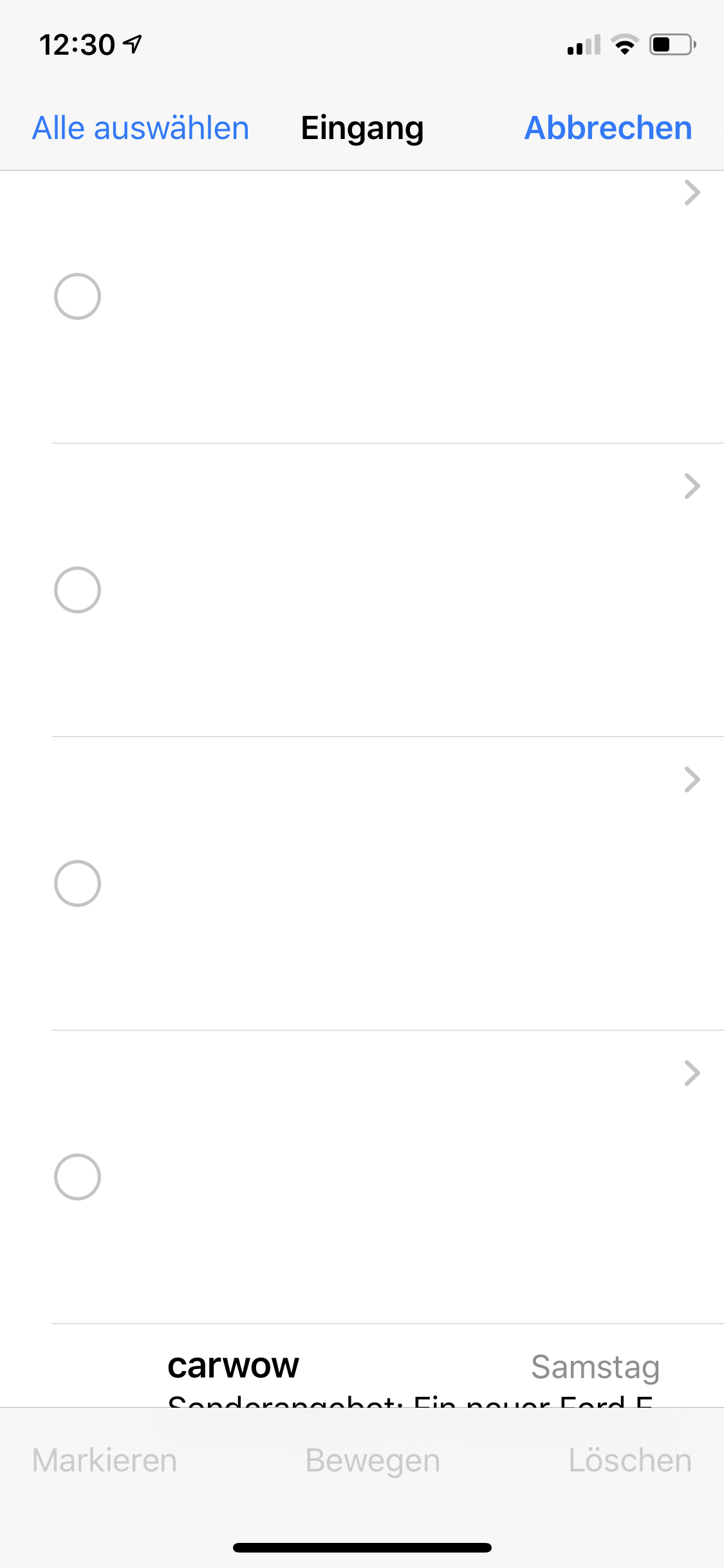 Hi Leute, bin richtig genervt und verzweifelt. Seit dem Update auf iOS 13 wird mein Posteingang nicht mehr richtig angezeigt. Es sind immer leere Mails zwischen den normalen Emails. Wenn ich darauf klicke, steht da „Keine Email ausgewählt“. Löschen kann ich die nicht, Neustart, Neueinrichtung des Accounts, habe ich alles schon mehrmals probiert. Bin mittlerweile aus iOS 13.2.