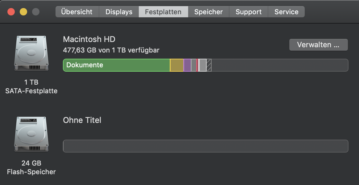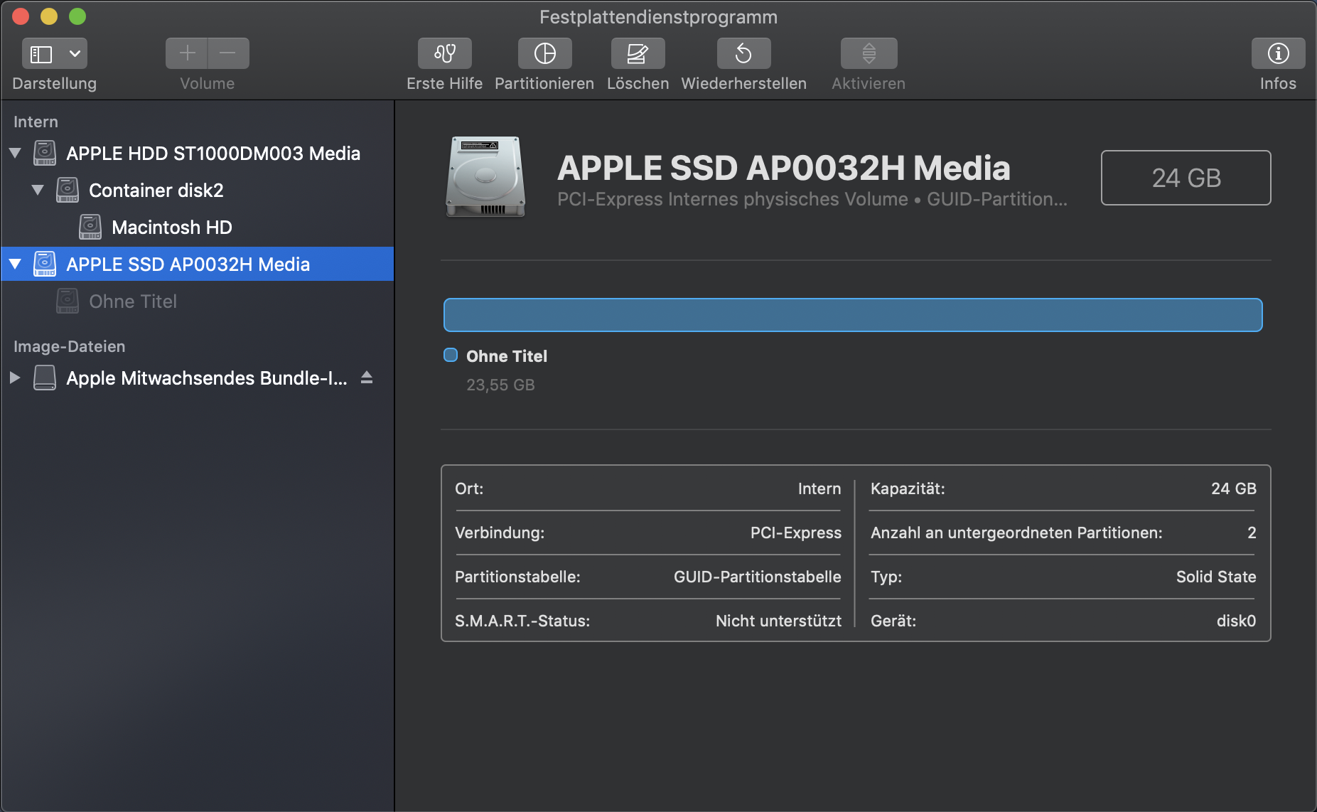 Mir fiel dann auf dass ich plötzlich wieder 2 Festplatten angezeigt bekomme nur diesmal war es ein Flashspeicher mit 24GB