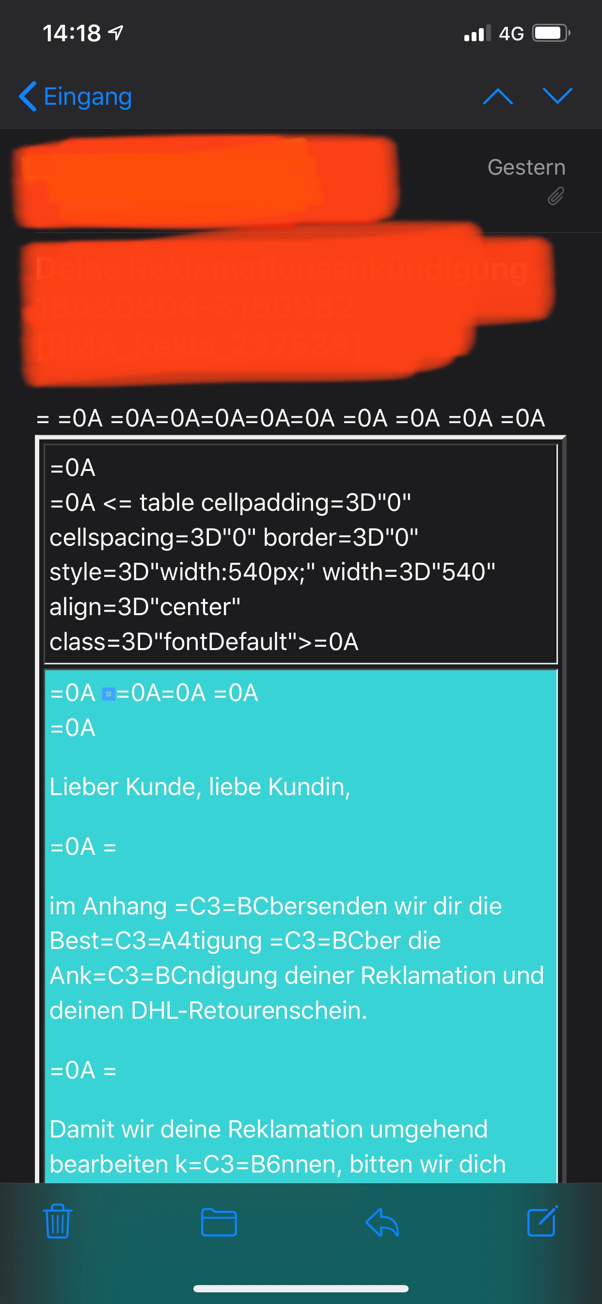 es ist sehr ärgerlich, wenn man wichtige Mail weiterleiten oder beantworten will und dies nicht kann? Weil der Inhalt komplett wirre mit Ziffern und einzelnen Buchstaben besteht.