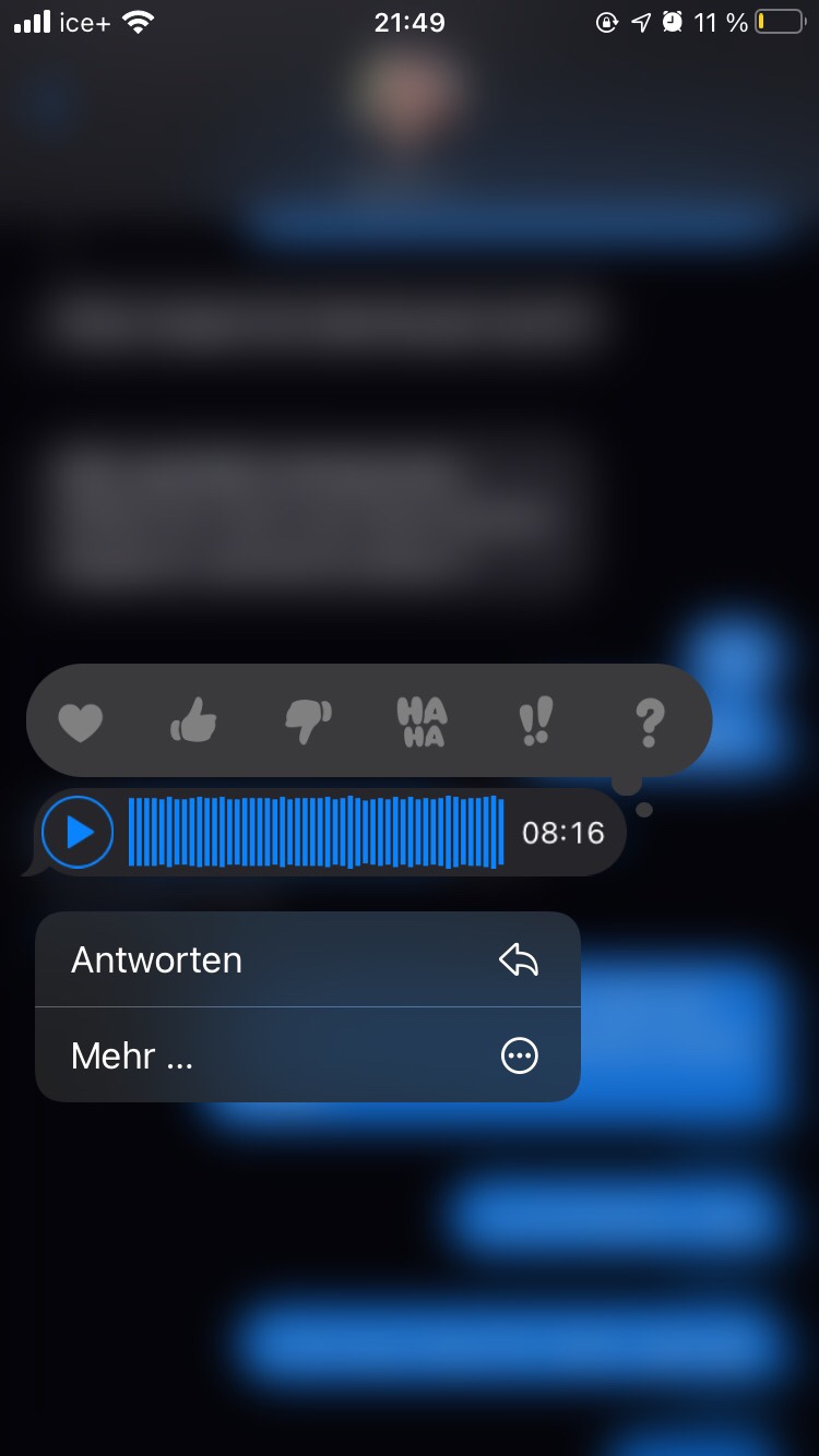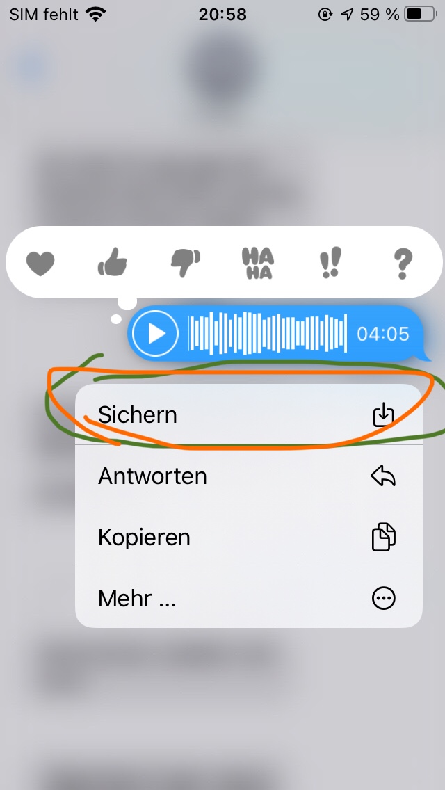 wie kann ich eingehende Audionachrichten in Imessage speichern. Bei fehlt irgendwie der „Behalten“ Button