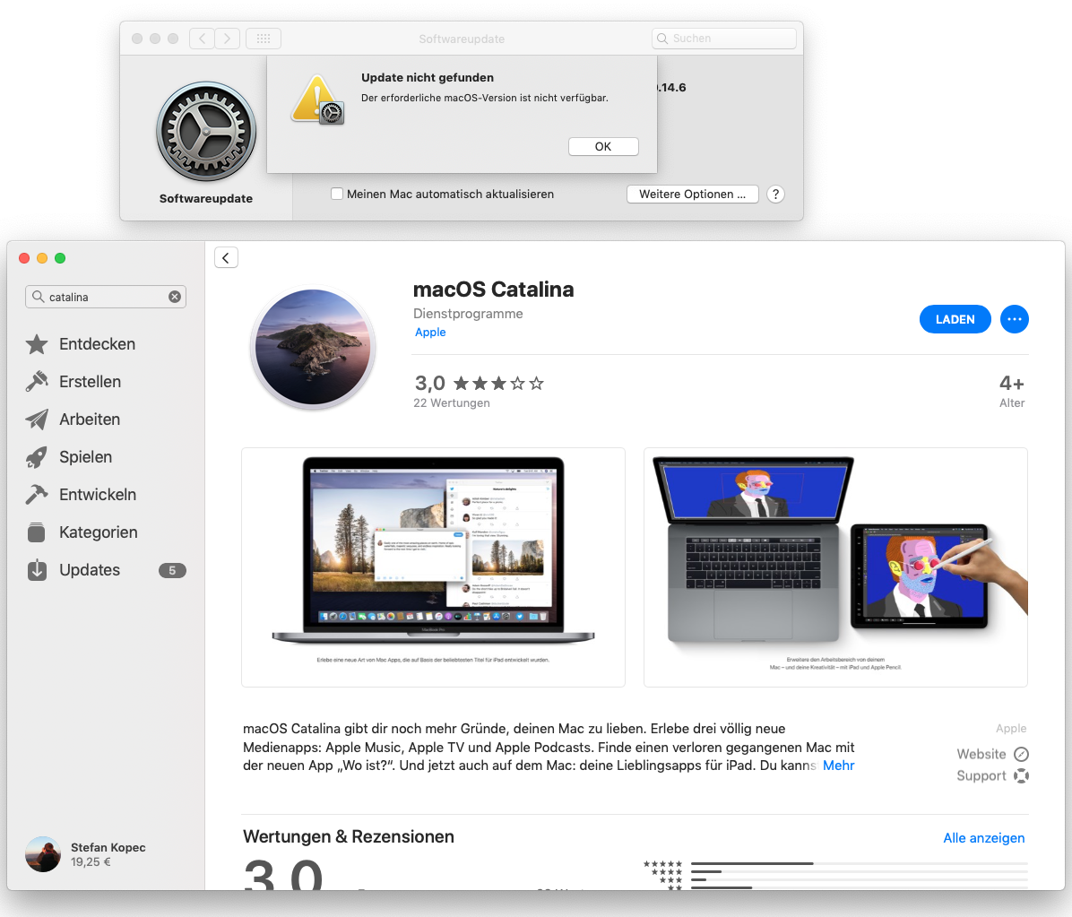 Catalina Update nicht gefunden, obwohl Kompatibilität besteht (mac OS 10.14.6)