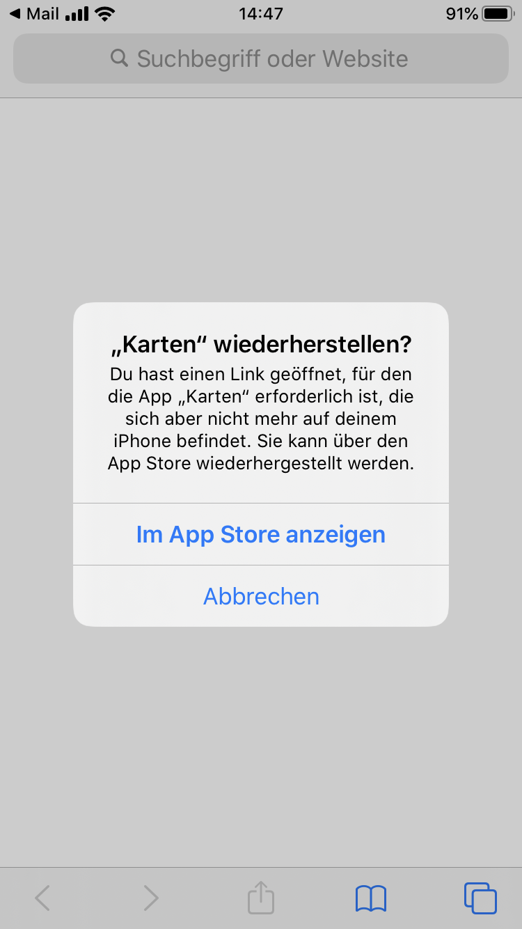 Eine Standard App legt man fest, damit die gewünschte App sich öffnet, wenn man zB. eine Adresse antippt. Nun scheint es, dass Apple Benutzer keine freie Wahl haben und gezwungen sind, entweder die Apple eigene Karten App zu belassen (siehe Meldung die kommt) oder alle anderen wie ich die Adresse zu kopieren, die gewünschte App (zB Google Maps) zu öffnen und die kopierte Adresse einzufügen. Und das ist doch recht kompliziert. Warum soll ich nicht selber festlegen dürfen, welche App mein Standard ist?