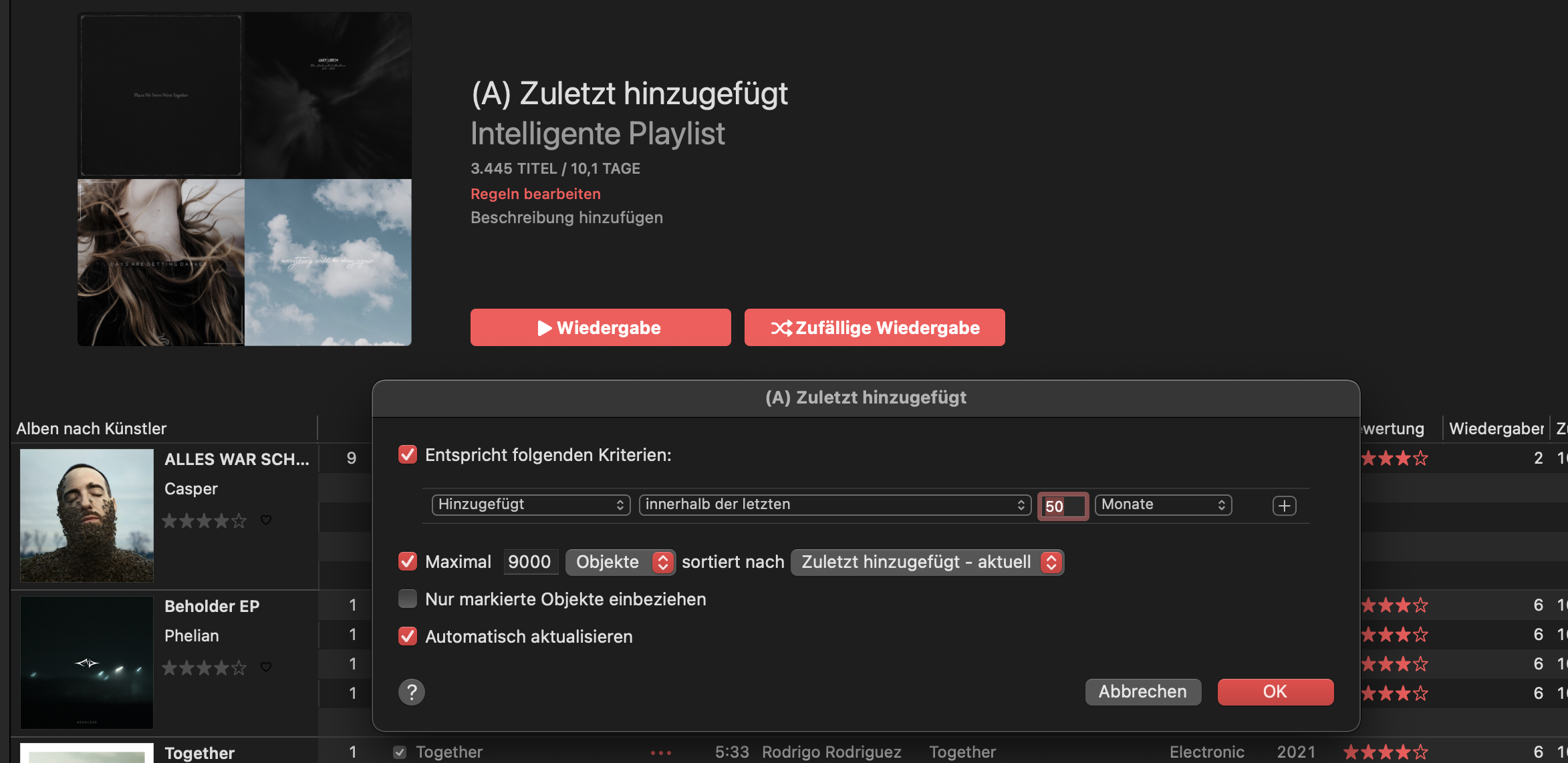 Apple Music, Lieder sortieren nach zuletzt hinzugefügt