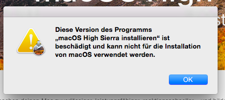 Wieso wird im App-Store die Installationsdatei für High Sierra als defekt gemeldet und lässt sich nicht runterladen? Hat jemand dies auch schon bemerkt und was lässt sich machen?
