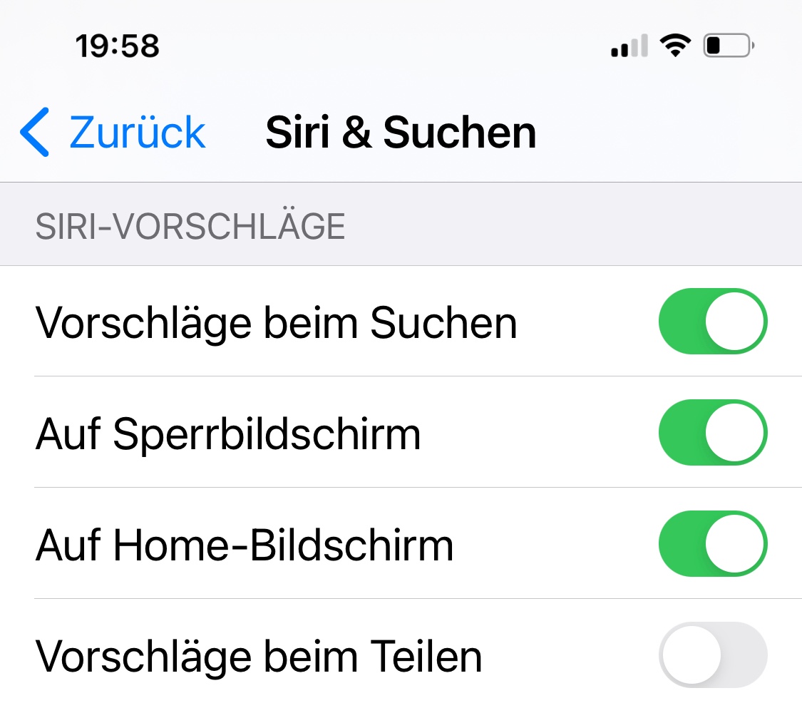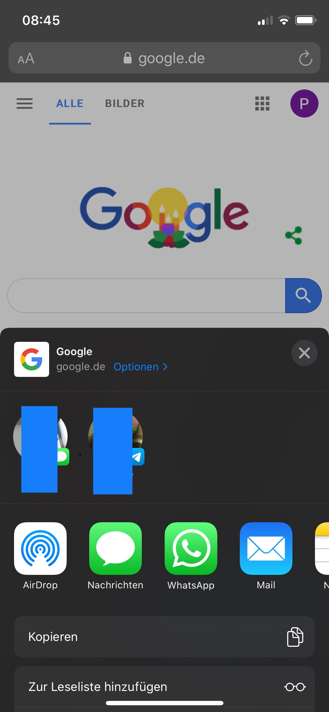 ich habe das Problem, dass ich in dem Teilen Menü, egal wo (Safari, Bilder Teilen etc.) immer eine Leiste mit den letzten Chats habe. Allerdings teilweise von Leuten die nichtmal mehr als Kontakt gespeichert sind. Siri und Siri Vorschläge in der App habe ich schon versucht auszuschalten, die sind immer noch da. Gibt es eine Lösung die Personen zu löschen und die ganze Zeile zu entfernen?