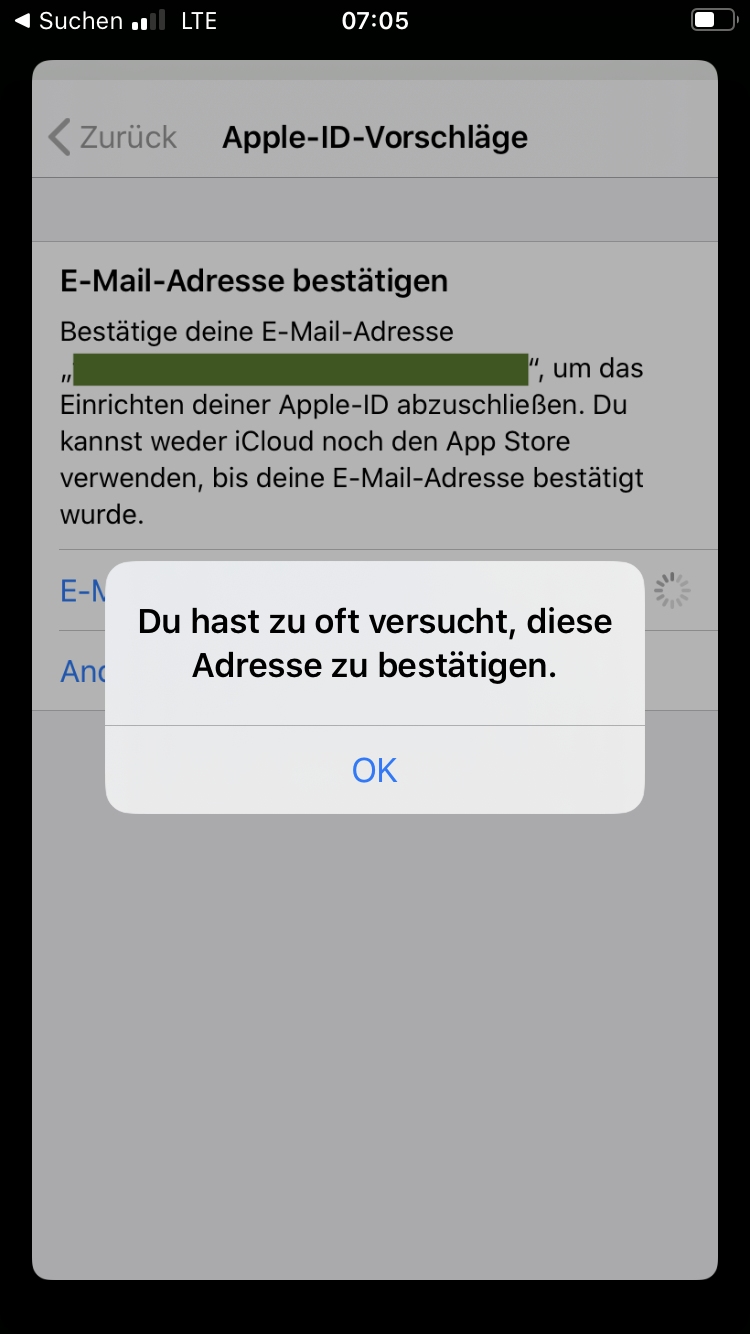 Bis ich bemerkte, dass ich meine Apple ID noch bestätigen muss um Apps Downloaden zu können.