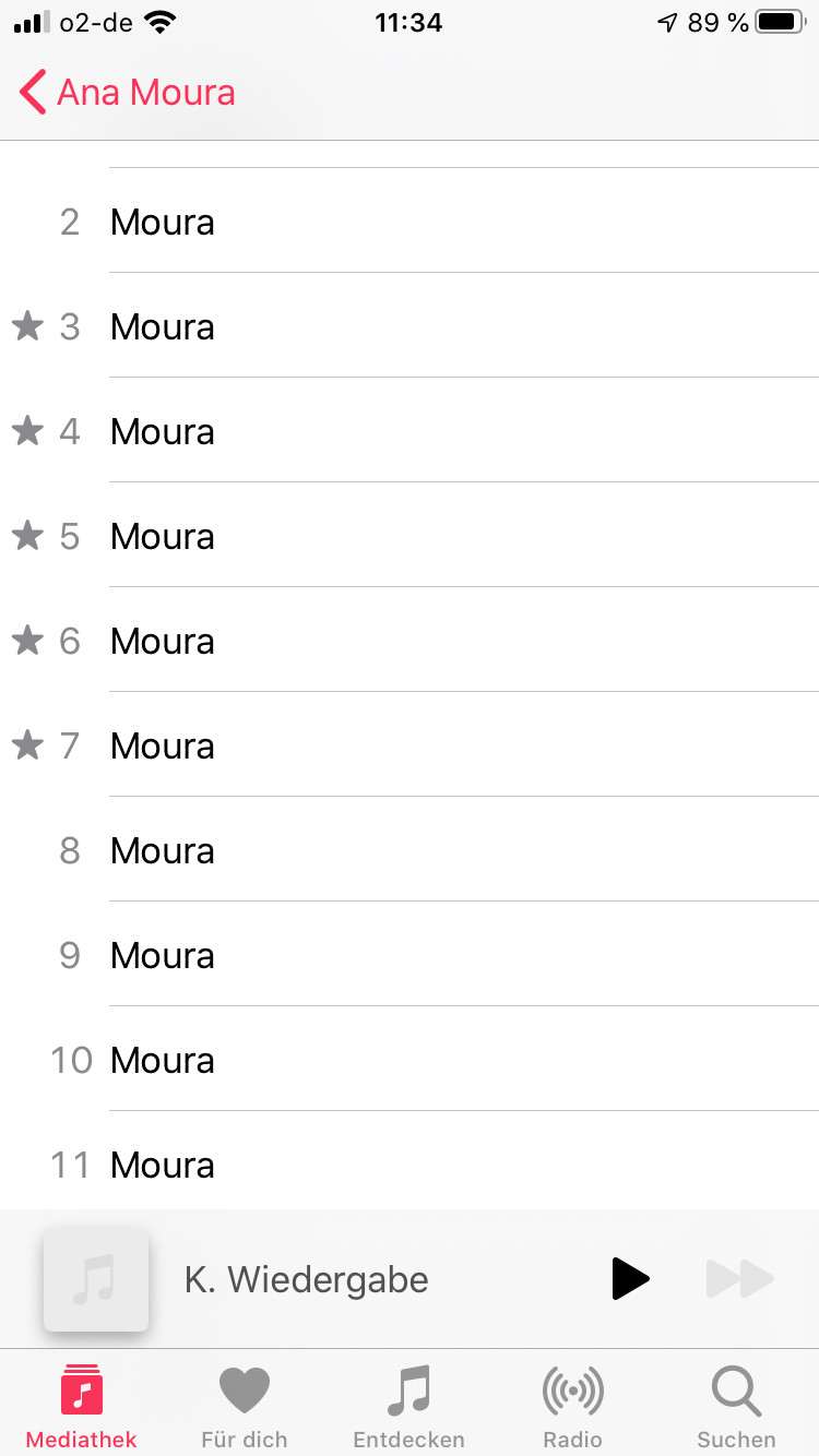 Wenn ich einen Song abspiele, wird zumindest der richtige Name angezeigt, in der Liste hingegen ist er falsch. Das ist auch im Auto unter CarPlay so.
