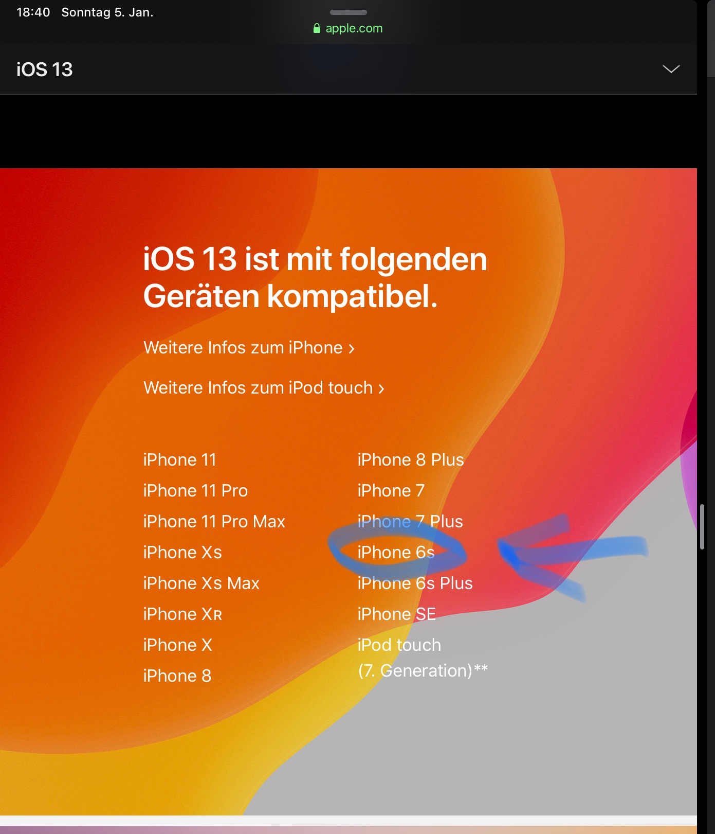 Wo findest du denn die Aussage, dass iOS 13 auch für das iPhone 6 Plus erhältlich sein sollte?