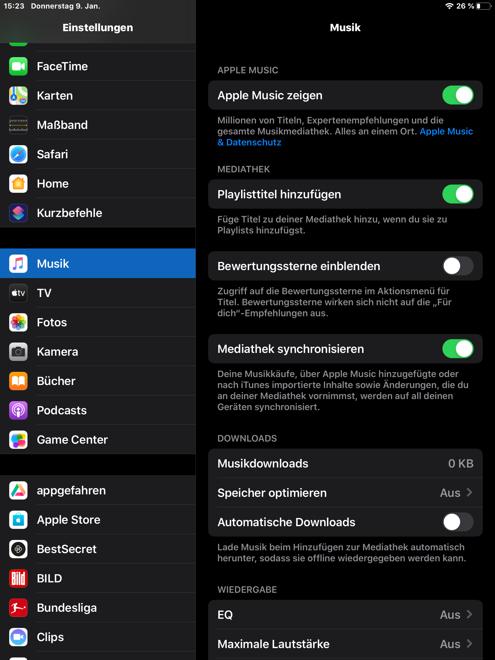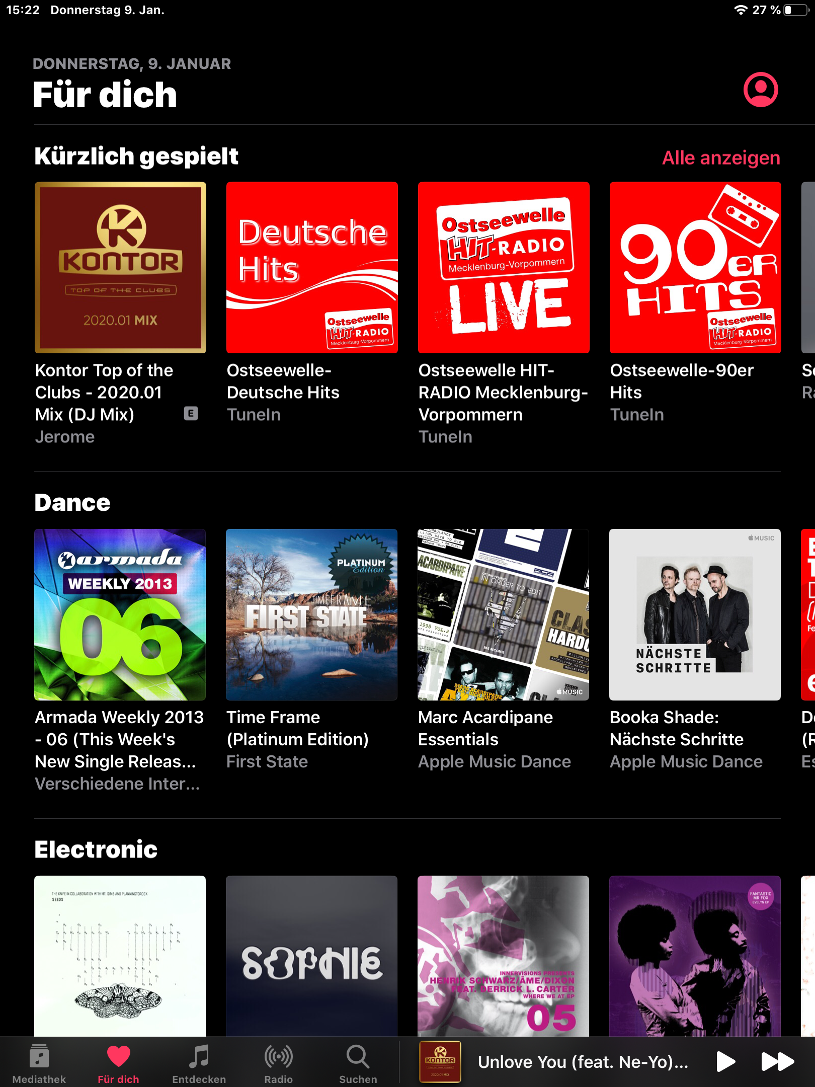 das ist schon merkwürdig. Um der Sache genauer auf den Grund zu gehen, schick uns doch bitte mal einen Screenshot von deinem "Für dich" Tab und den Einstellungen > Musik.