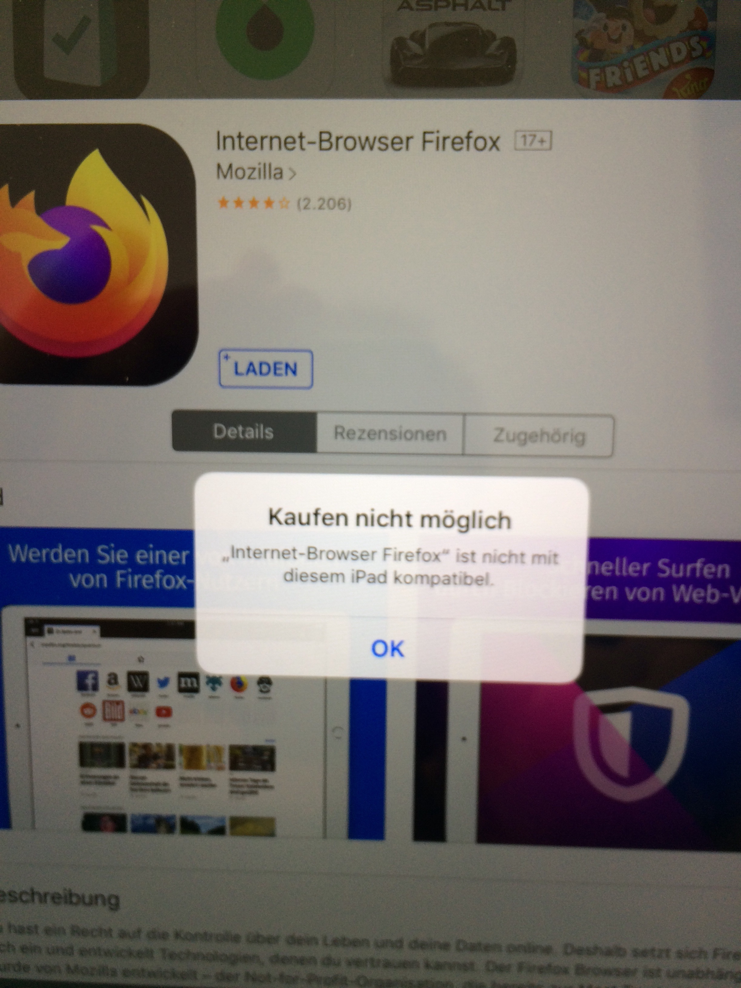 Internet-Browser Firefox ist nicht mit diesem IPad kompatibel