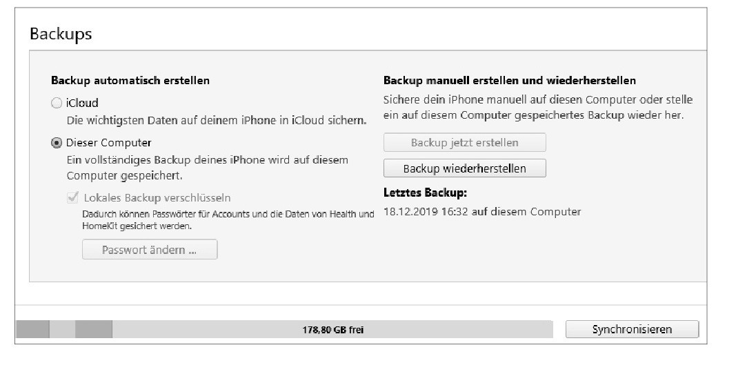 Frage benutzt Du ein zweites Backup Programm wie zB. iMazing 2 ?