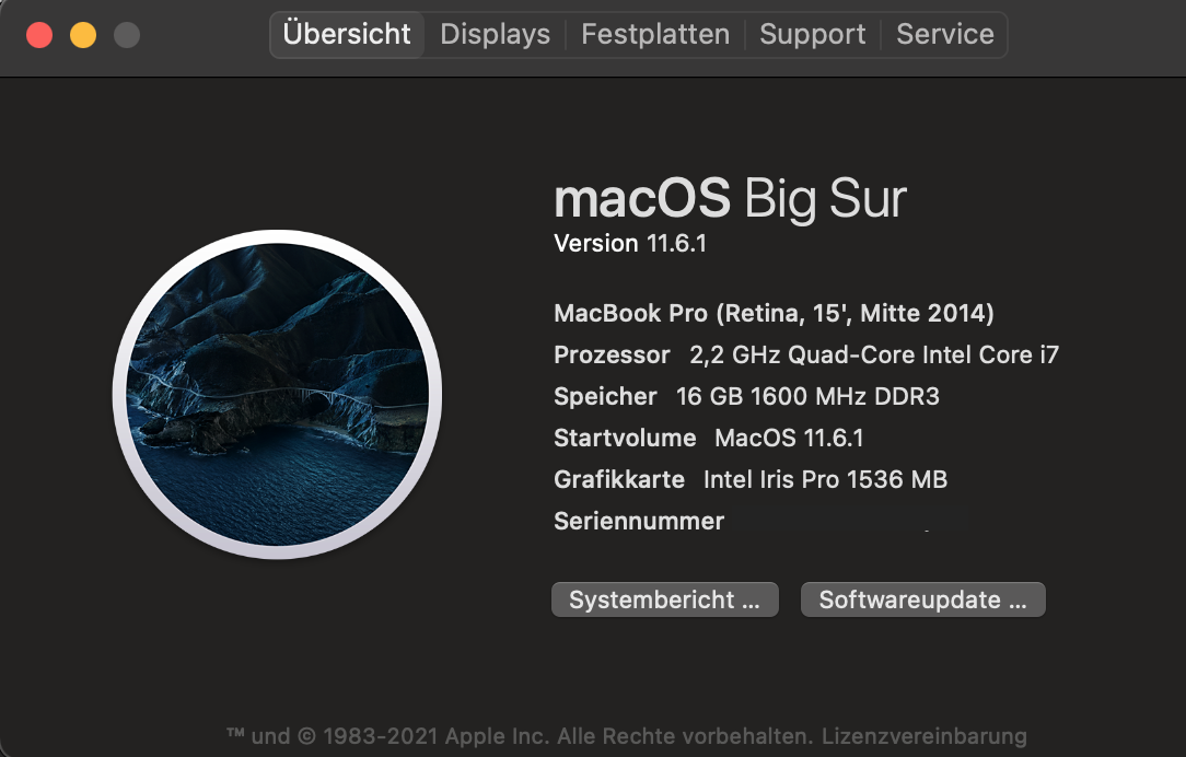 unter --> --> Über diesen Mac erhältst du Informationen zum Modelljahr deines MB Pro