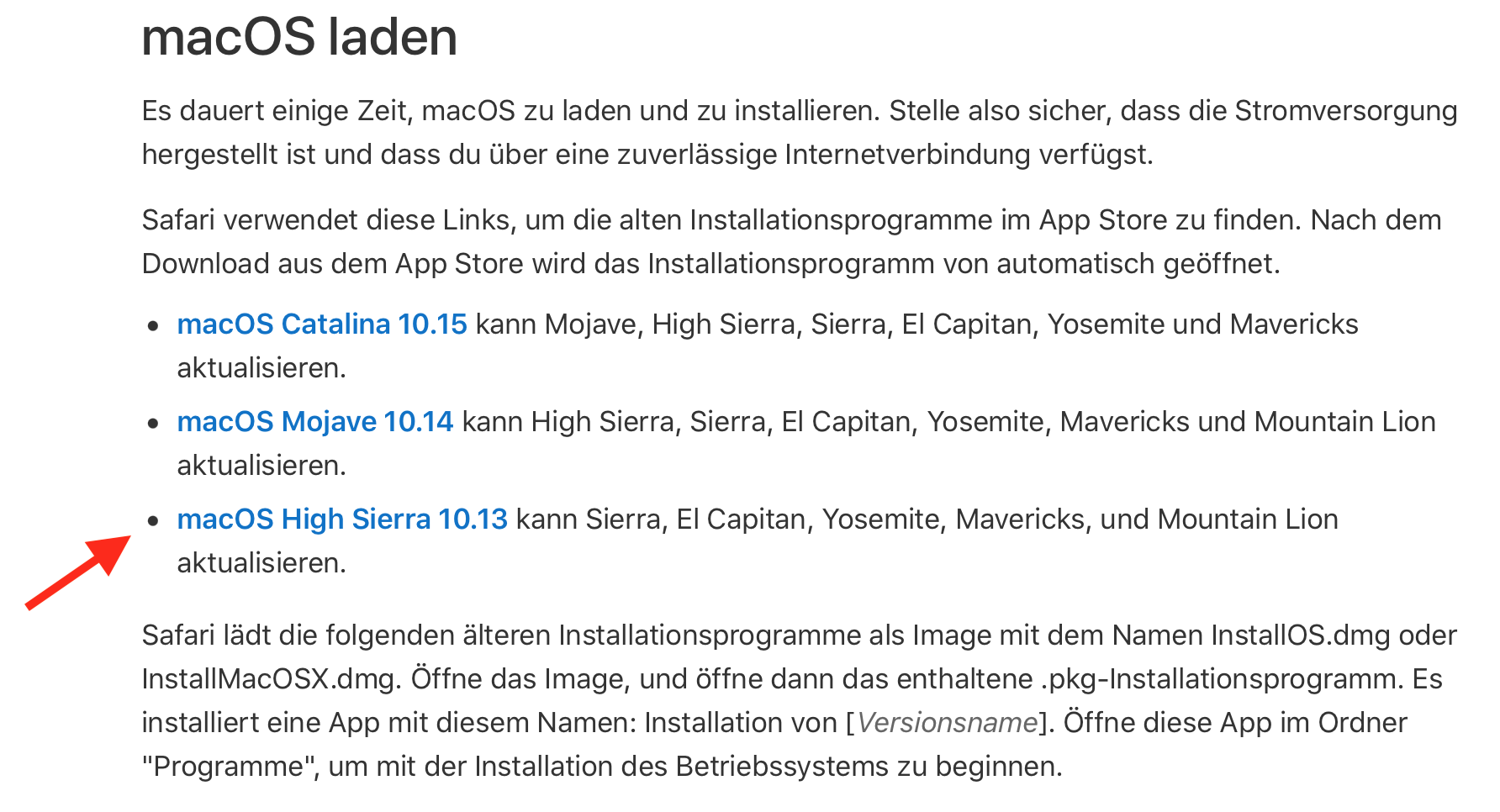 Auf gleichem Weg wird in Abhängigkeit vom Modelljahr deines Mac auch die Installation von Mojave oder Catalina erfolgen können.