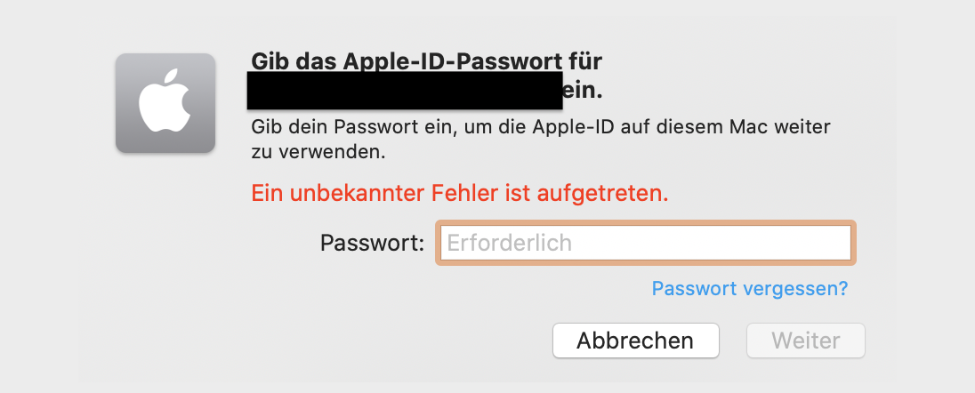 nach einer Emailadressen-Änderung bei meiner Apple ID, kann ich mich nicht mehr auf meinem MacBook (15-inch, 2018 - macOS Catalina V. 10.15.2) anmelden.