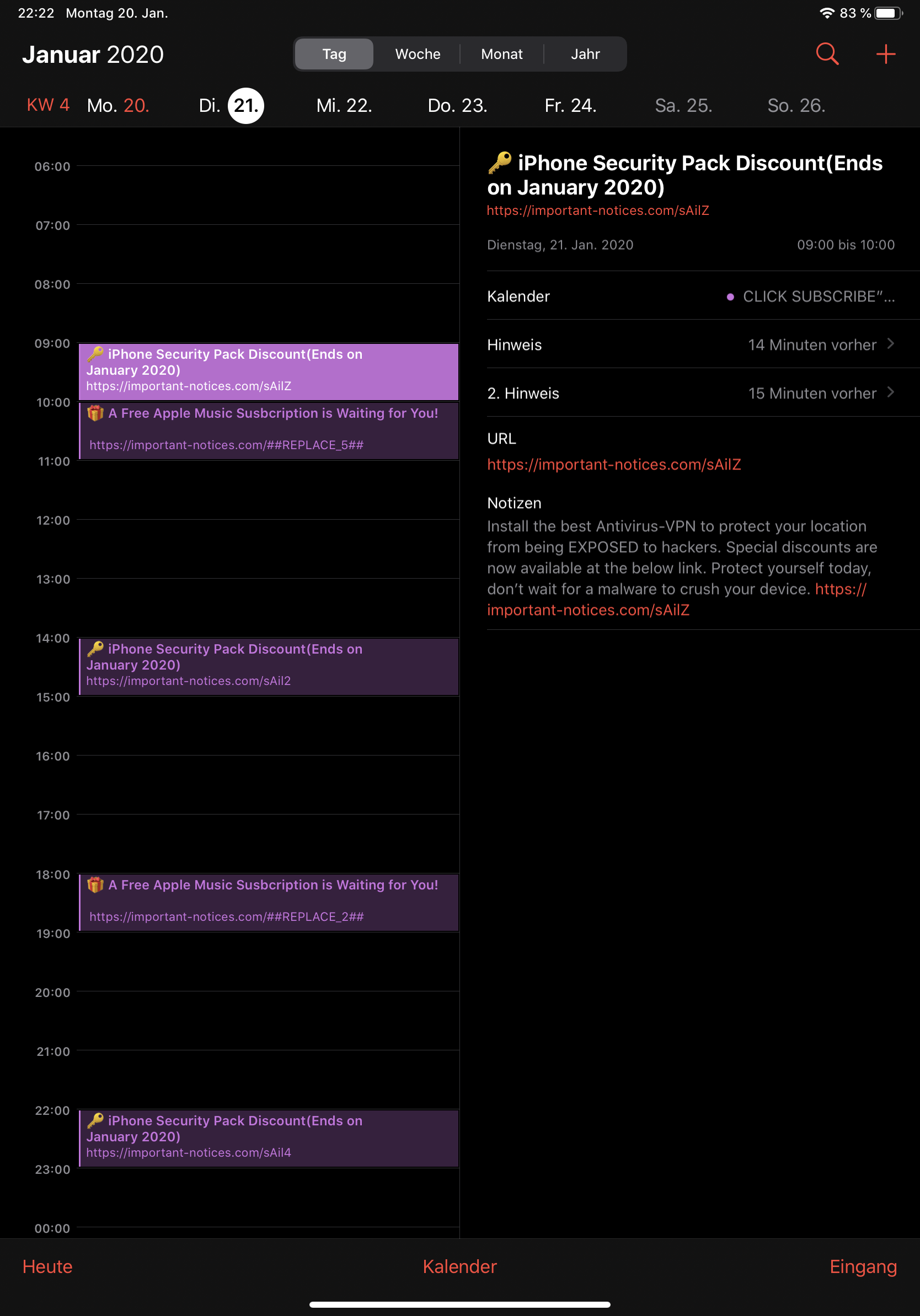 Nicht löschbarer Kalendereintrag