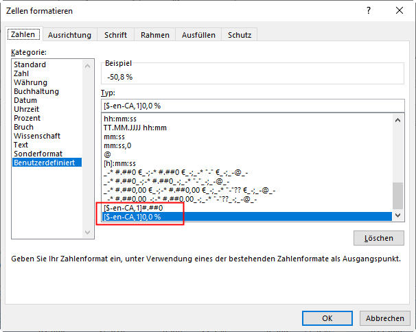 e.g. "0.0 %" is "[$-en-CA, 1]0,0 %" in the exported xlsx file.