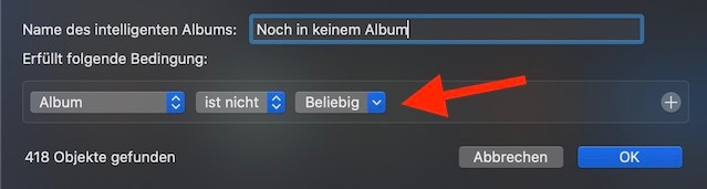 • Setze die Regel auf "Album - ist nicht - beliebig"