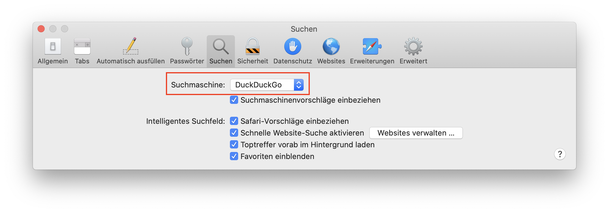 Dort unter "Suchmaschine" im Drop-Down Menü die gewünschte Suchmaschine auswählen.