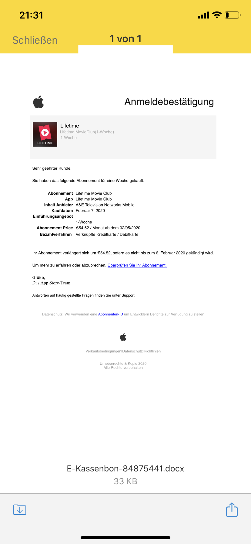 hallo ich habe eine rechnung bekommen von euch das ich lieftime movie- club gekauft hätte das habe ich nicht gemacht , was ist das ? Und wie kann ich das wieder löschen oder stornieren
