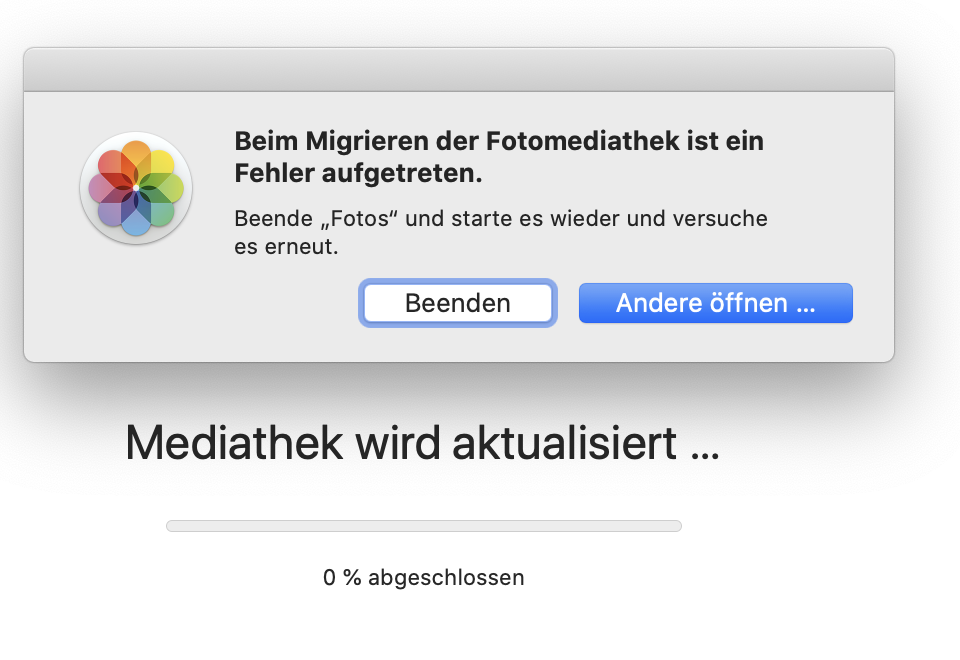 Beim Migrieren der Fotomediathek ist ein Fehler aufgetreten