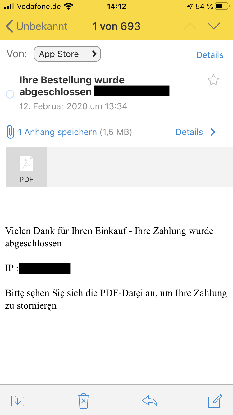 Sehr geehrte Damen und Herren ich habe eine Nachricht bekommen von dem App Store ich hätte etwas gekauft