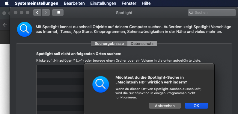 Ich möchte prinzipiell nicht, daß ein, auch kein Apple, Tool meine Festplatte durchsucht, und möchte diesen Vorgang prinzipiell unmöglich machen. Natürlich nutze ich Spotlight weder durch Draufdrücken noch durch Tastenkombi.