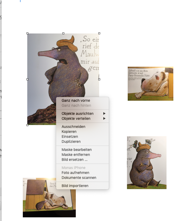 Seit Mojava kann man ja Fotos direkt vom Handy auf ein Dokument bringen. Nun habe ich in einem Pages Dokument vier Fotos (direkt via mein iPhone gemacht) und brauche diese aber jeweils als jpg, um sie dann in einem anderen Dokument (genau genommen in einem Notenblatt, welches ich mit musescore erstellt habe) einzufügen.