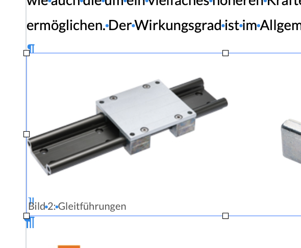 Wenn ich unter ein Bild einfach eine Zeile setze und den text formatiere wird er erkannt. Nur leider verschiebt sich dieser nicht mit dem Bild was die Sache recht kompliziert und umständlich macht.